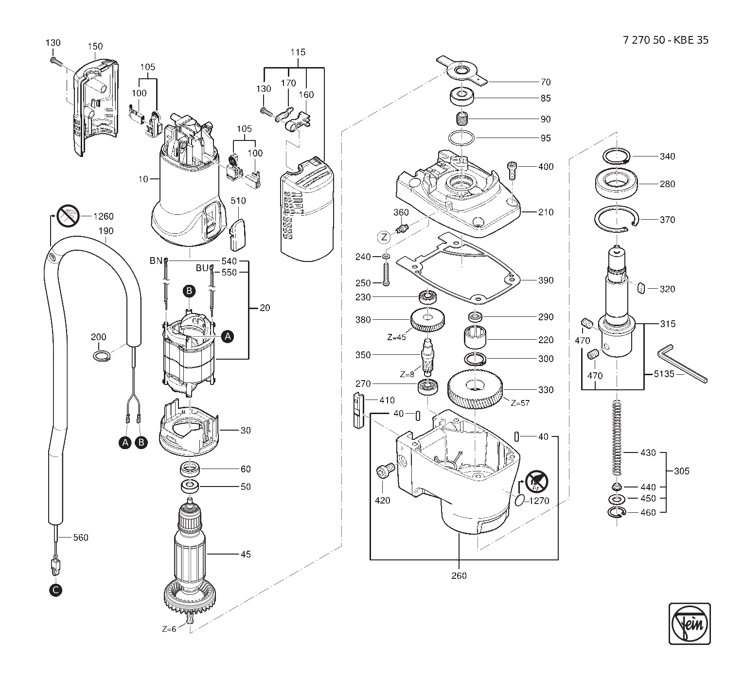Zeichnung Sollten Sie Fragen zu einem Ersatzteil vom Fein KBE35 72705000230 haben, können Sie uns gerne eine E-Mail (mit einem Foto vom Typenschild Ihres Gerätes) schreiben oder eine Ersatzteilanfrage stellen.