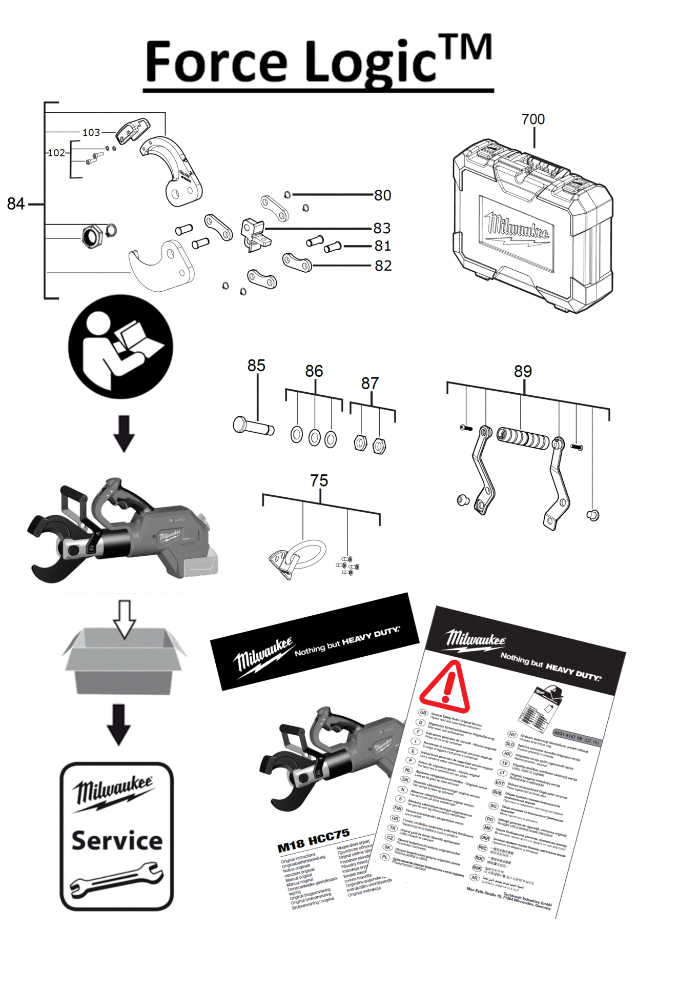 Ersatzteile für Milwaukee M18HCC75-502C - Highforcetools (4000458710 4933459270)