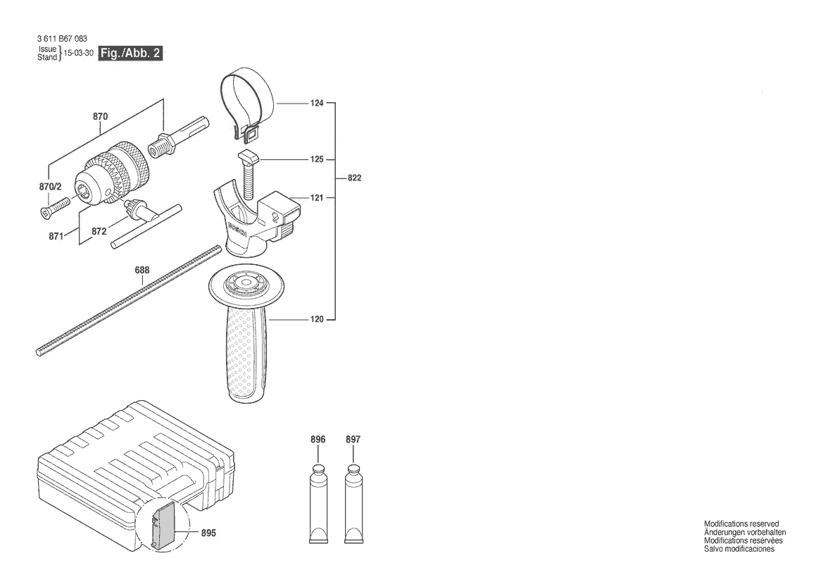 Zeichnung Sollten Sie Fragen zu einem Ersatzteil vom Bosch Bohrhammer GBH 2-28 D | 240 V | 020 - MY (3 611 B67 0L3) haben, können Sie uns gerne eine E-Mail (mit einem Foto vom Typenschild Ihres Gerätes) schreiben oder eine Ersatzteilanfrage stellen.