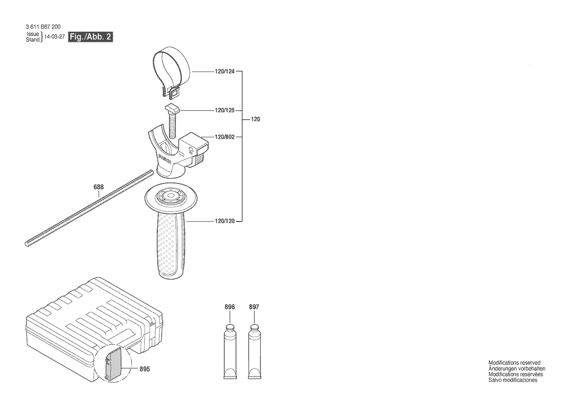 Zeichnung Sollten Sie Fragen zu einem Ersatzteil vom Bosch Bohrhammer GBH 2-28 DFV | 230 V (3 611 B67 290) haben, können Sie uns gerne eine E-Mail (mit einem Foto vom Typenschild Ihres Gerätes) schreiben oder eine Ersatzteilanfrage stellen.