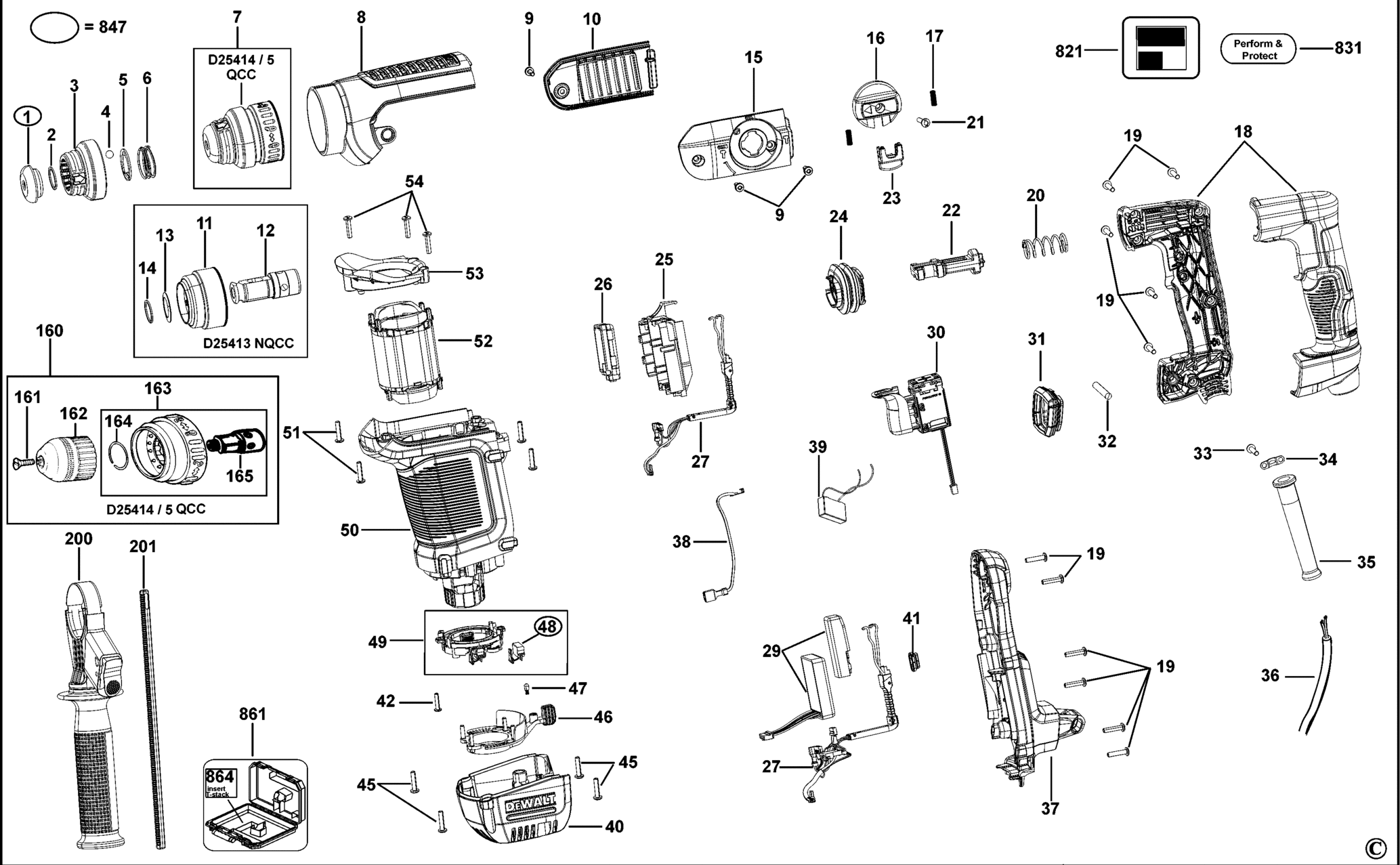 Ersatzteile für DeWalt D25414K-QS TYPE 1 DREHHAMMER D25414K-QS D25414K
