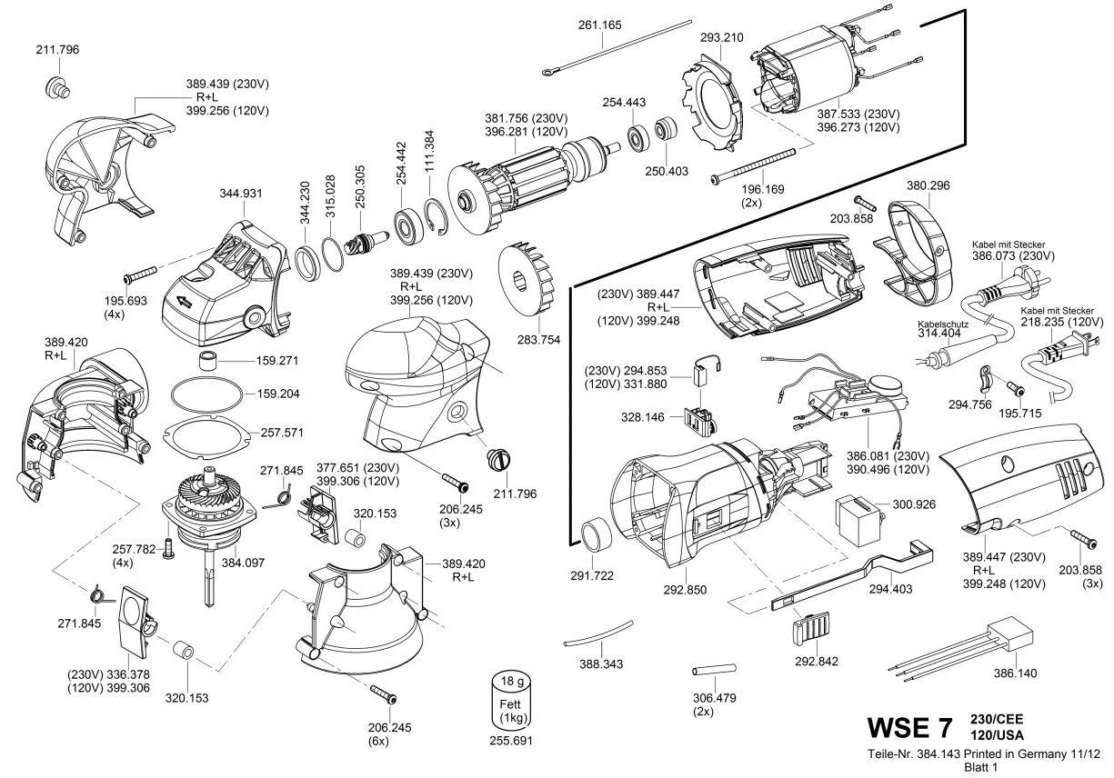 Zeichnung Sollten Sie Fragen zu einem Ersatzteil vom Flex WSE 7 Vario 230CEE haben, können Sie uns gerne eine E-Mail (mit einem Foto vom Typenschild Ihres Gerätes) schreiben oder eine Ersatzteilanfrage stellen.