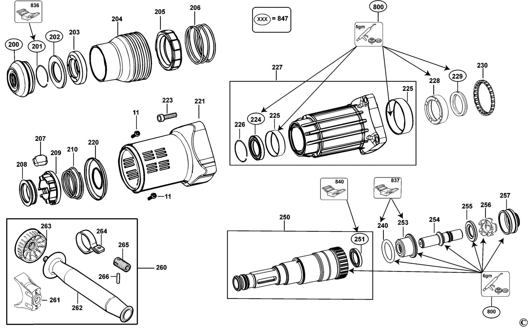 Ersatzteile für DeWalt D25762K-LX TYPE 1 DREHHAMMER D25762K-LX D25762K