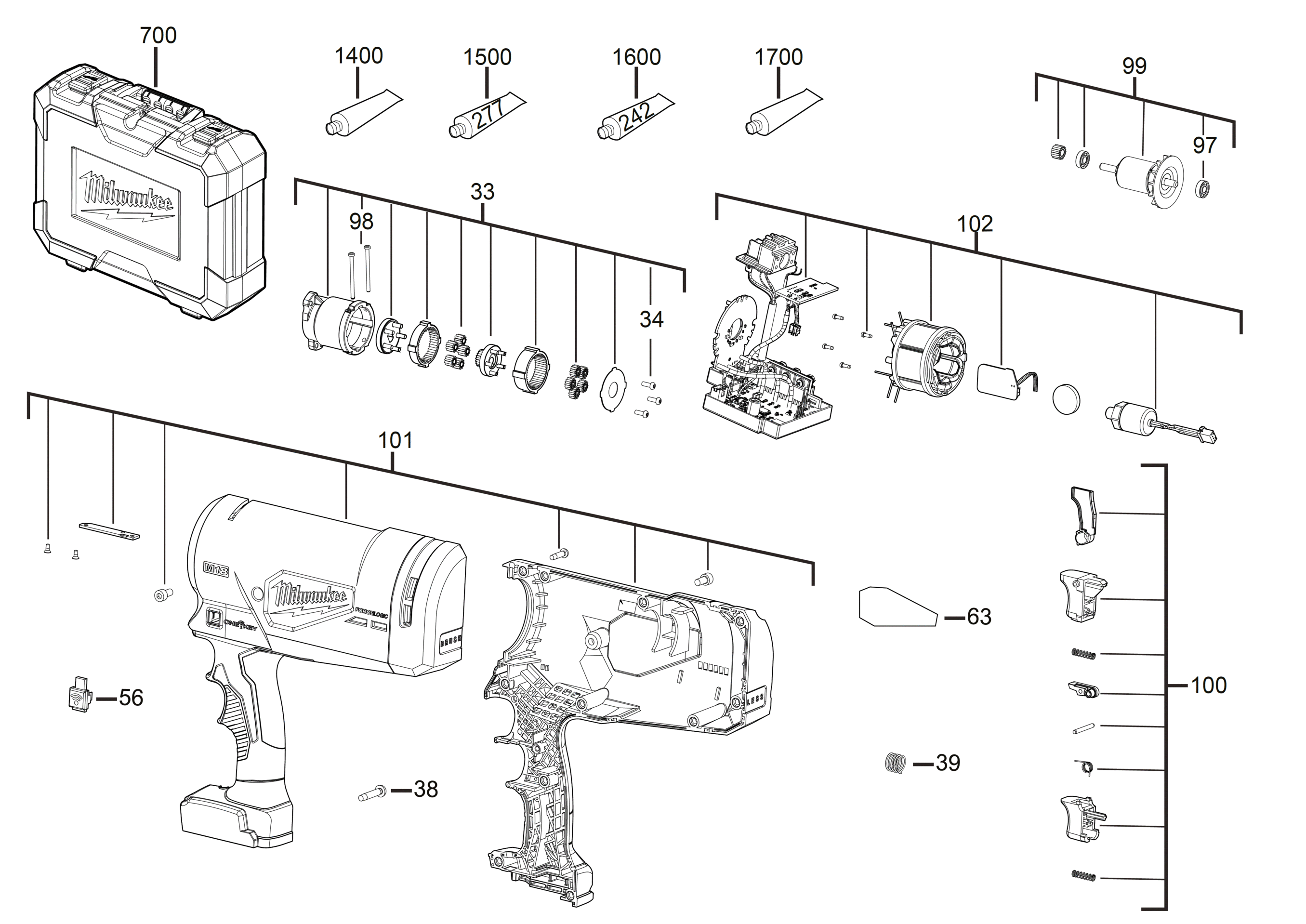 Ersatzteile für Milwaukee M18HCC45-522C - Highforcetools (4000477237 4933459267)