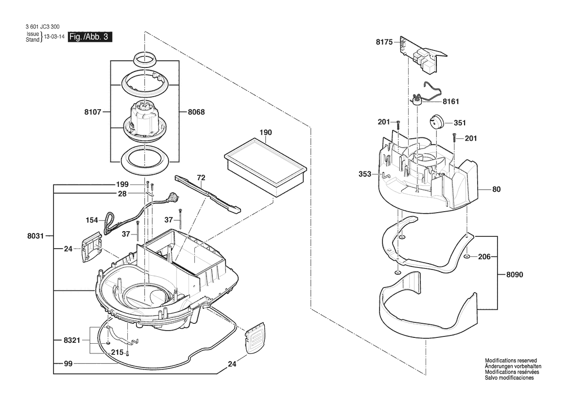 Ersatzteile für Bosch Allzwecksauger GAS 55 M AFC | 240 V | 027 - AU (3 601 JC3 340) Zeichnung 3