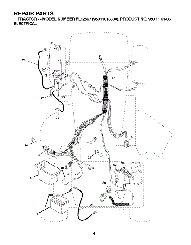 Ersatzteile für Flymo Gartentraktoren FL12597 (ab Apr-2009) aus der Zeichnung 4 Gültig für Artikelnummer: 96011018300