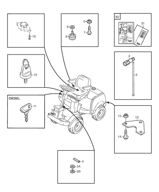 Zeichnungen von Stiga Frontaufsitzmäher Park Pro mit Geräte Nr. 13-6216-15 ab Baujahr 2004