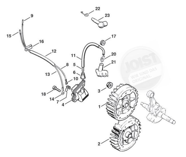 Hier finden Sie alle Ersatzteile von Stihl Benzin-Motorsägen 034 S der Zeichnungsgruppe Zündanlage: