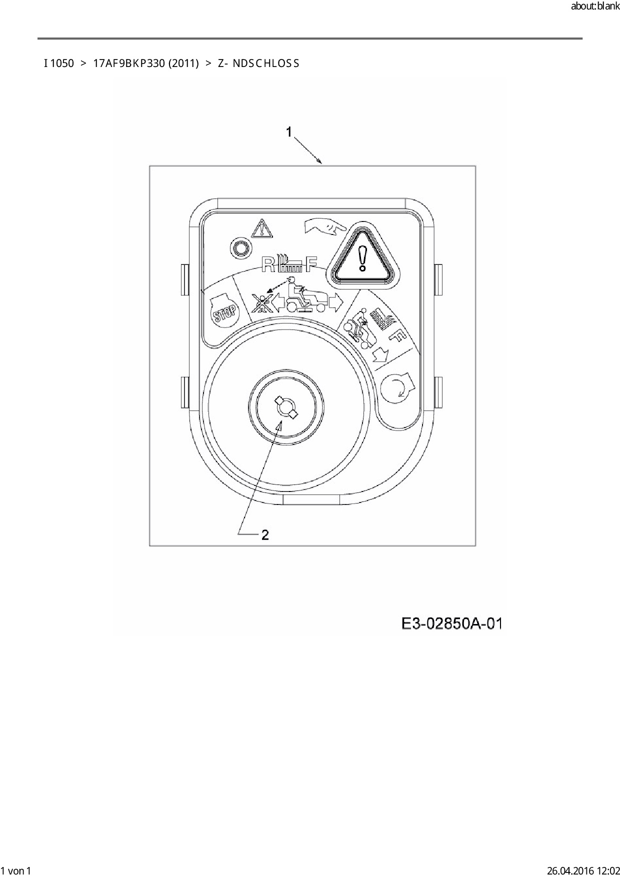 Ersatzteile für Zero Turn Cub Cadet i 1050 aus der Zeichnung Zündschloss: