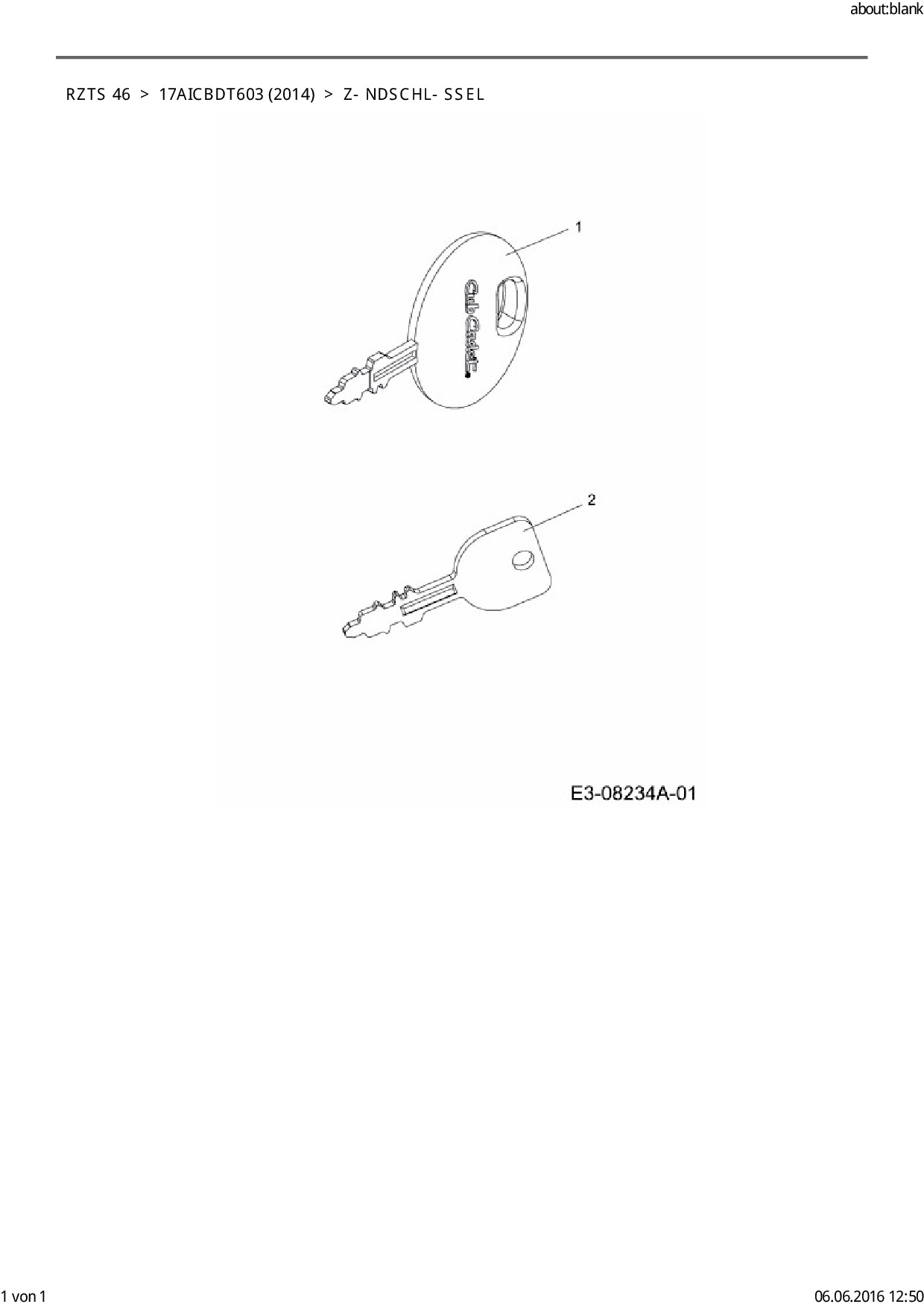 Ersatzteile für Zero Turn Cub Cadet RZTS 46 aus der Zeichnung Zündschlüssel: