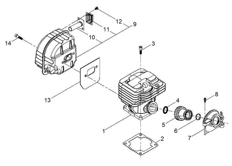 Zeichnung von shindaiwa Motorsägen 446s Zylinder, Auspuff: