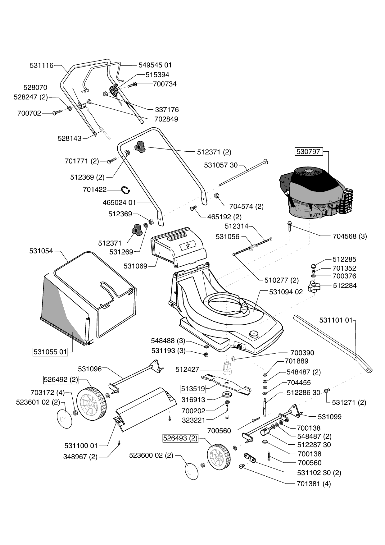 Zeichnungen von Sigma Benzinrasenmäher SL 424 A ab 01/2003 mit der Geräte-Artikelnr. 120586: