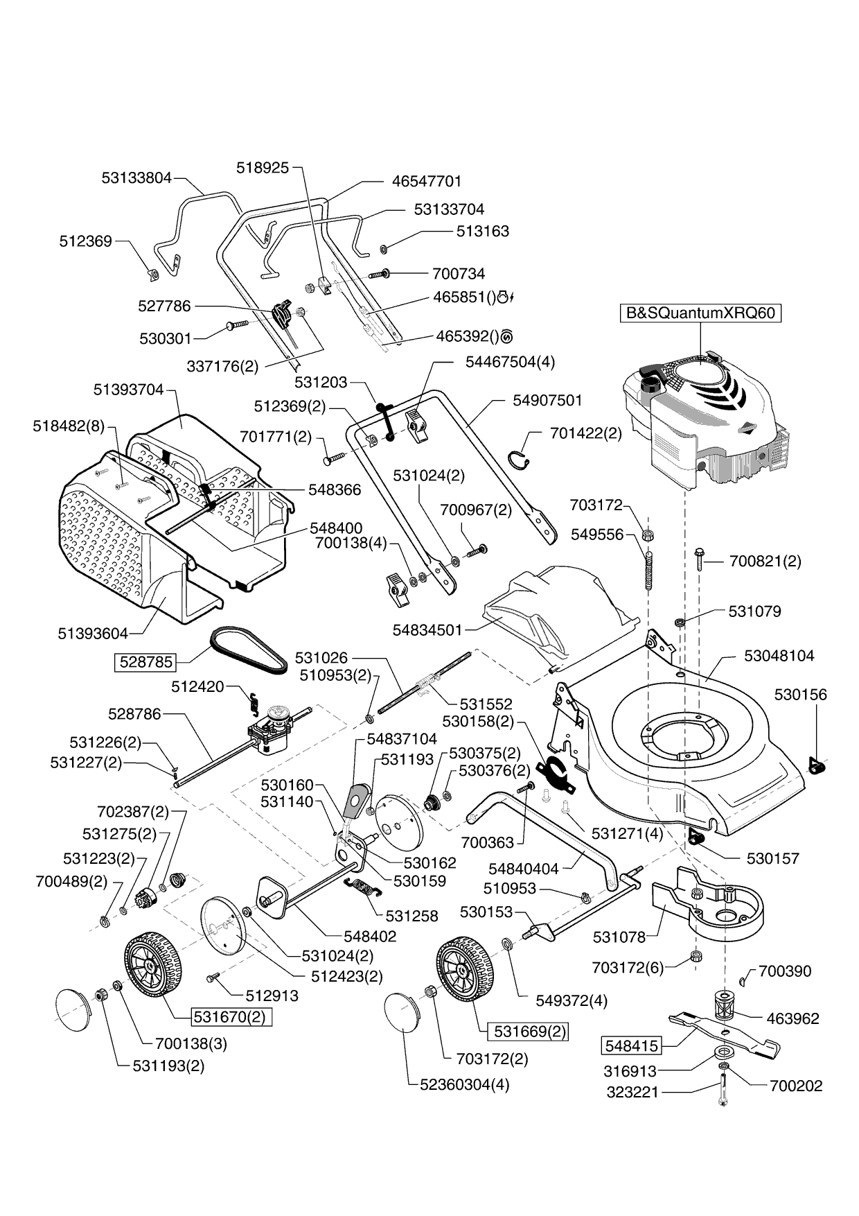 Zeichnungen von Ginge Benzinrasenmäher CF 520 B AUTO ab 01/2009 mit der Geräte-Artikelnr. 121247: