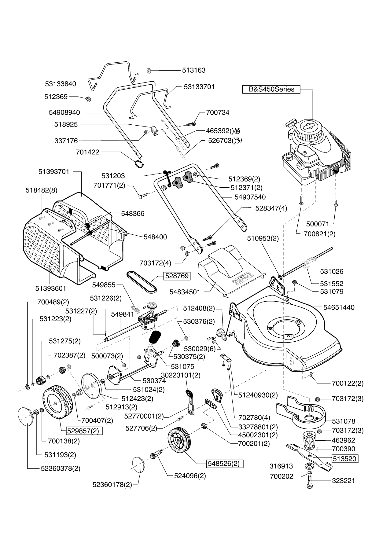 Zeichnungen von Ginge Benzinrasenmäher Silver 4.6 B AUTO ab 01/2009 mit der Geräte-Artikelnr. 121402: