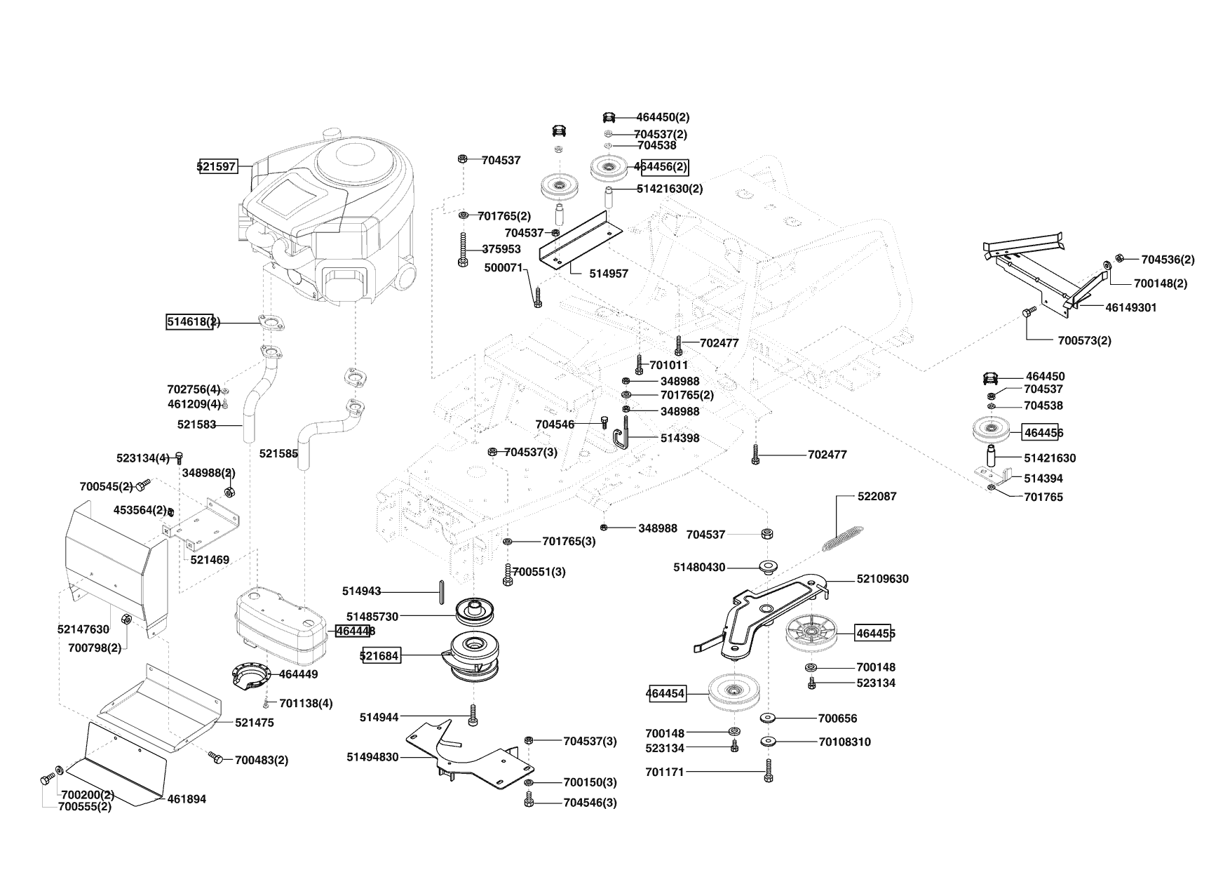 Zeichnungen von Powerline Rasentraktor T 20-102 HDE ab 02/2011 mit der Geräte-Artikelnr. 118871: