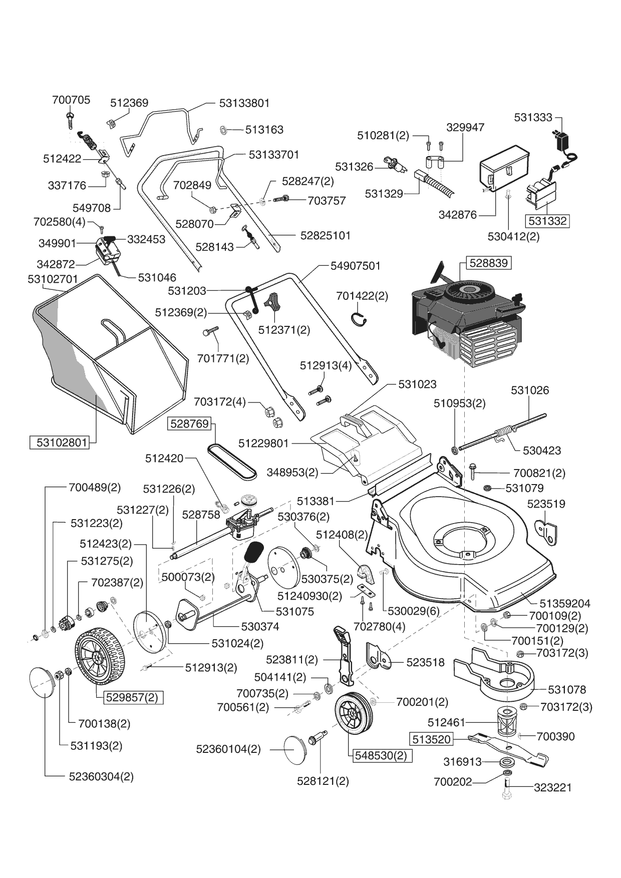 Zeichnungen von Ginge Benzinrasenmäher CL 46 Bauto ES ab 03/2002 mit der Geräte-Artikelnr. 120481: