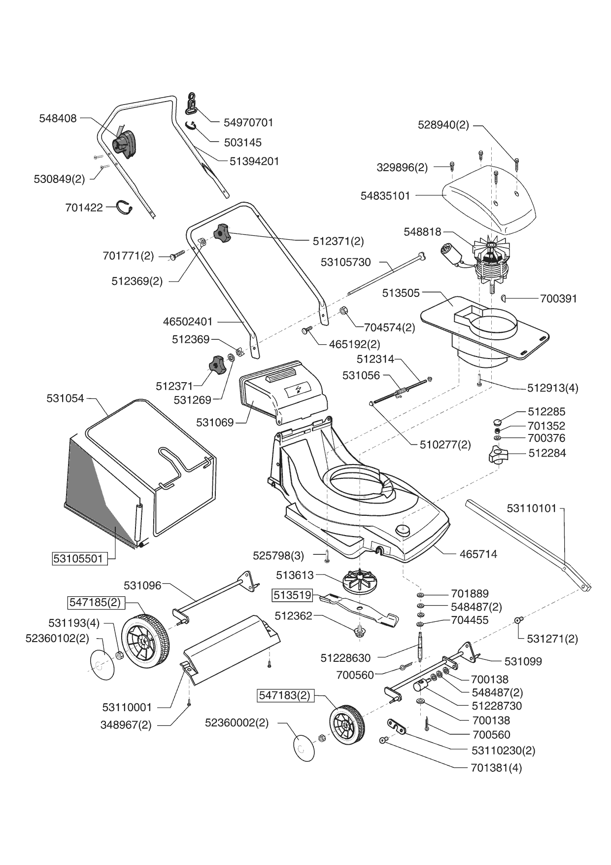 Zeichnungen von Sigma Elektrorasenmäher SL 420 E ab 03/2007 mit der Geräte-Artikelnr. 120585: