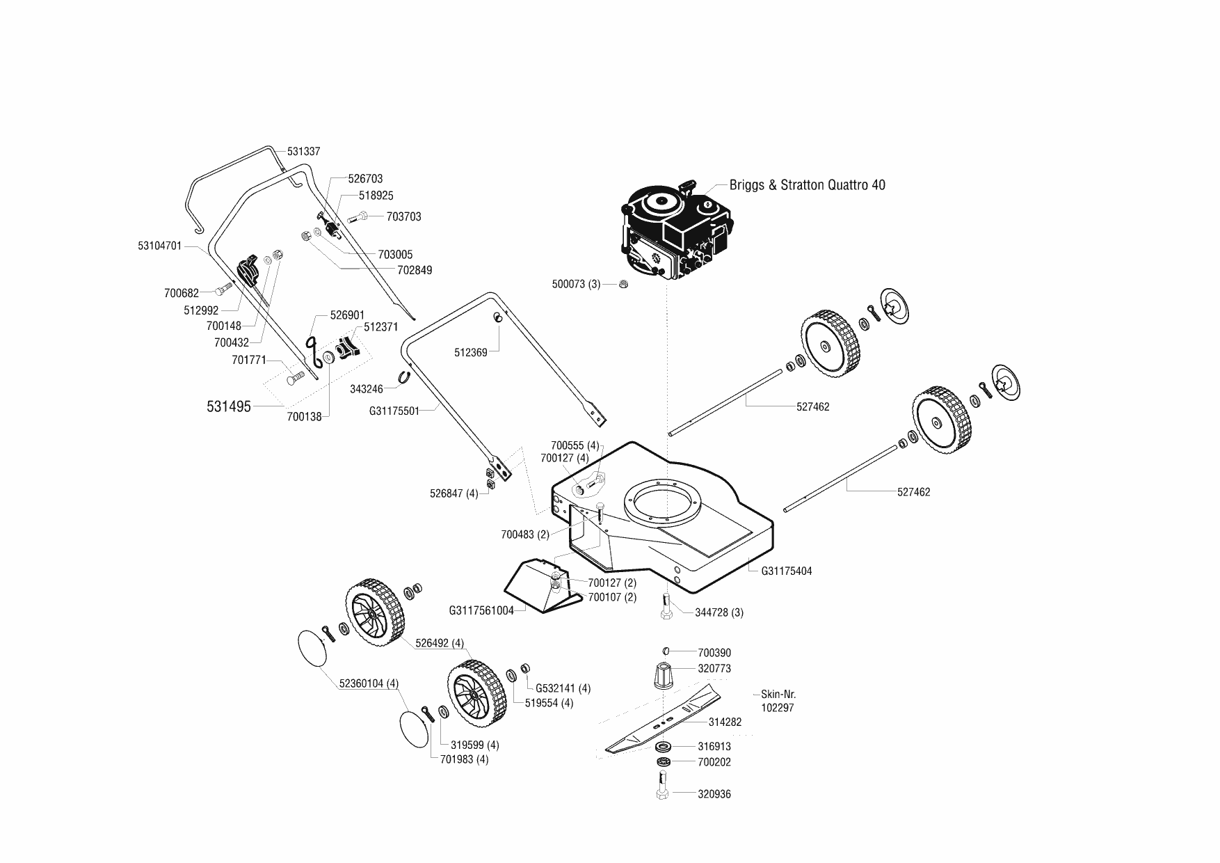 Zeichnungen von Ginge Benzinrasenmäher Top 3500 S ab 04/2001 mit der Geräte-Artikelnr. 118125: