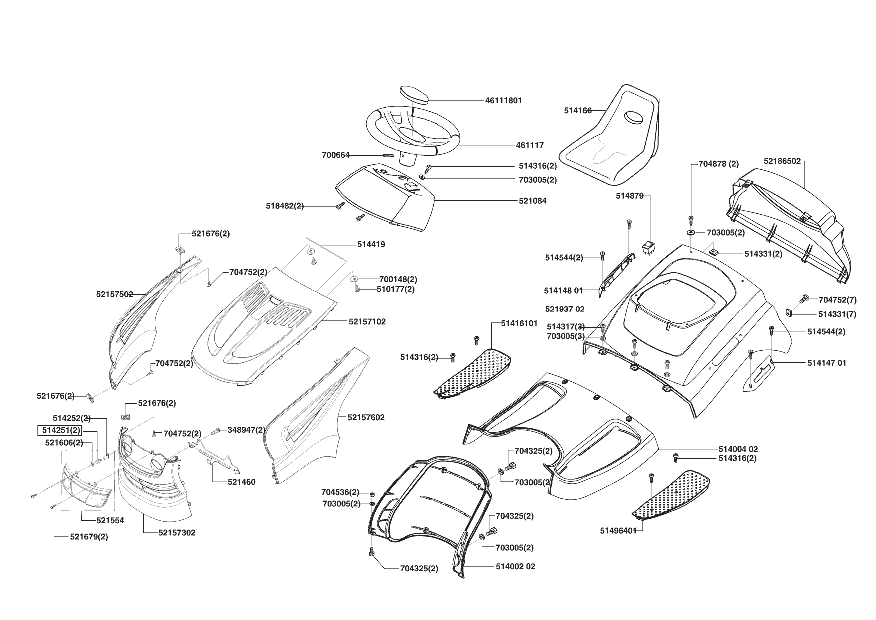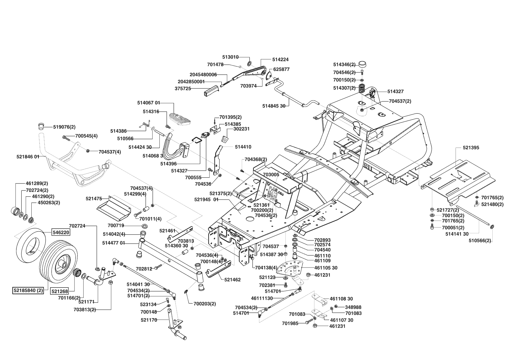 Zeichnungen von Powerline Rasentraktor T 15-102 HDS ab 04/2004 mit der Geräte-Artikelnr. 118352: