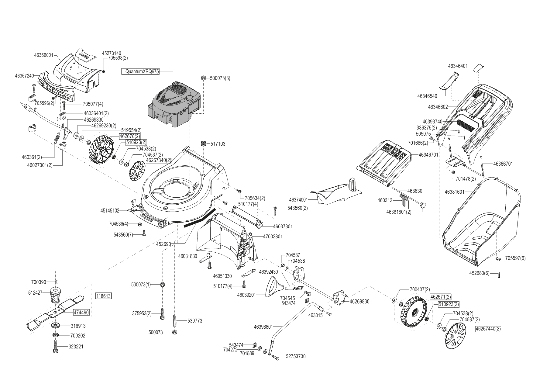 Zeichnungen von Powerline Benzinrasenmäher 4700 B ab 04/2012 mit der Geräte-Artikelnr. 119297: