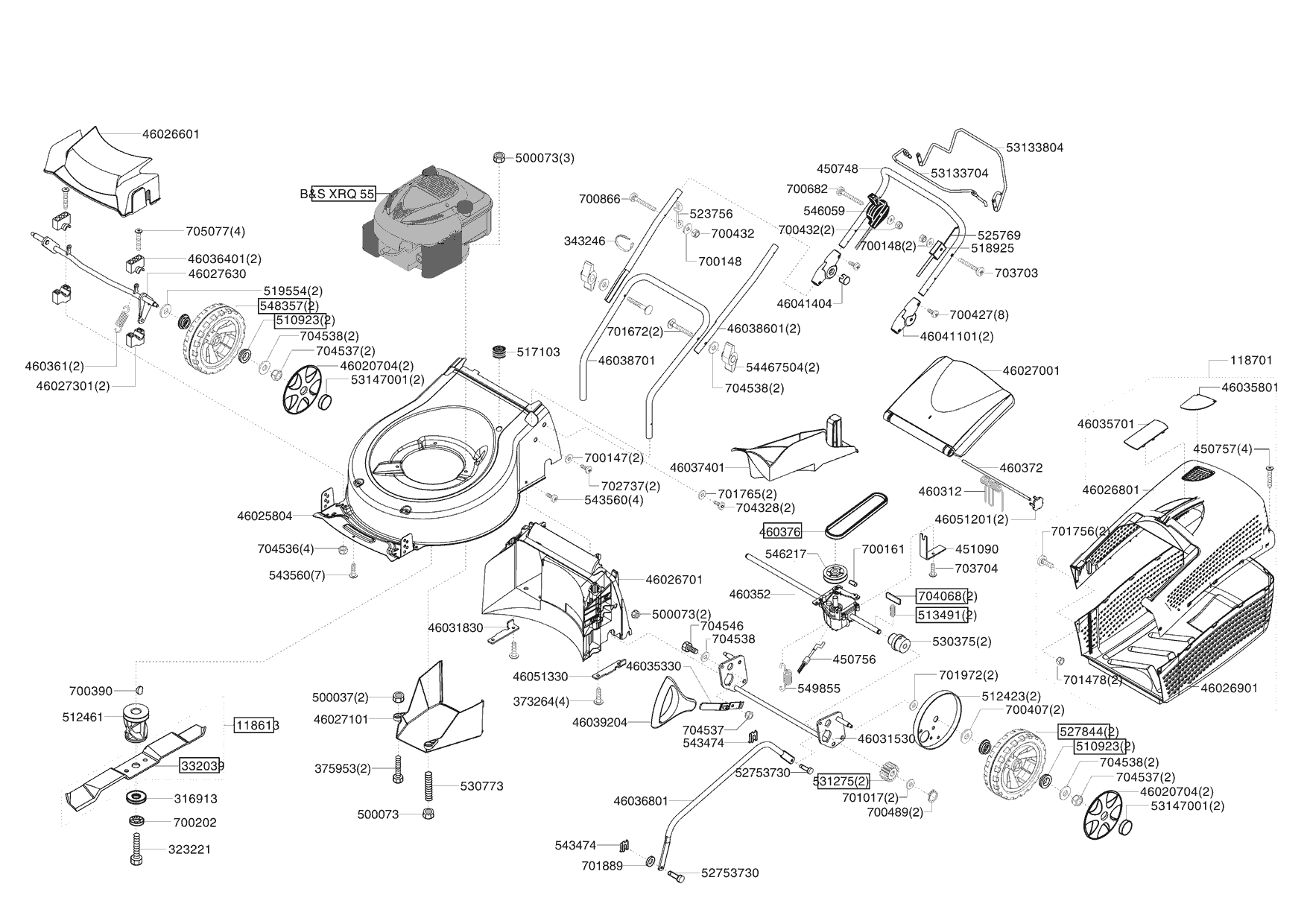 Zeichnungen von Ginge Benzinrasenmäher RASAERO 47 BC 3-I-1 AUTO ab 05/2005 mit der Geräte-Artikelnr. 118655: