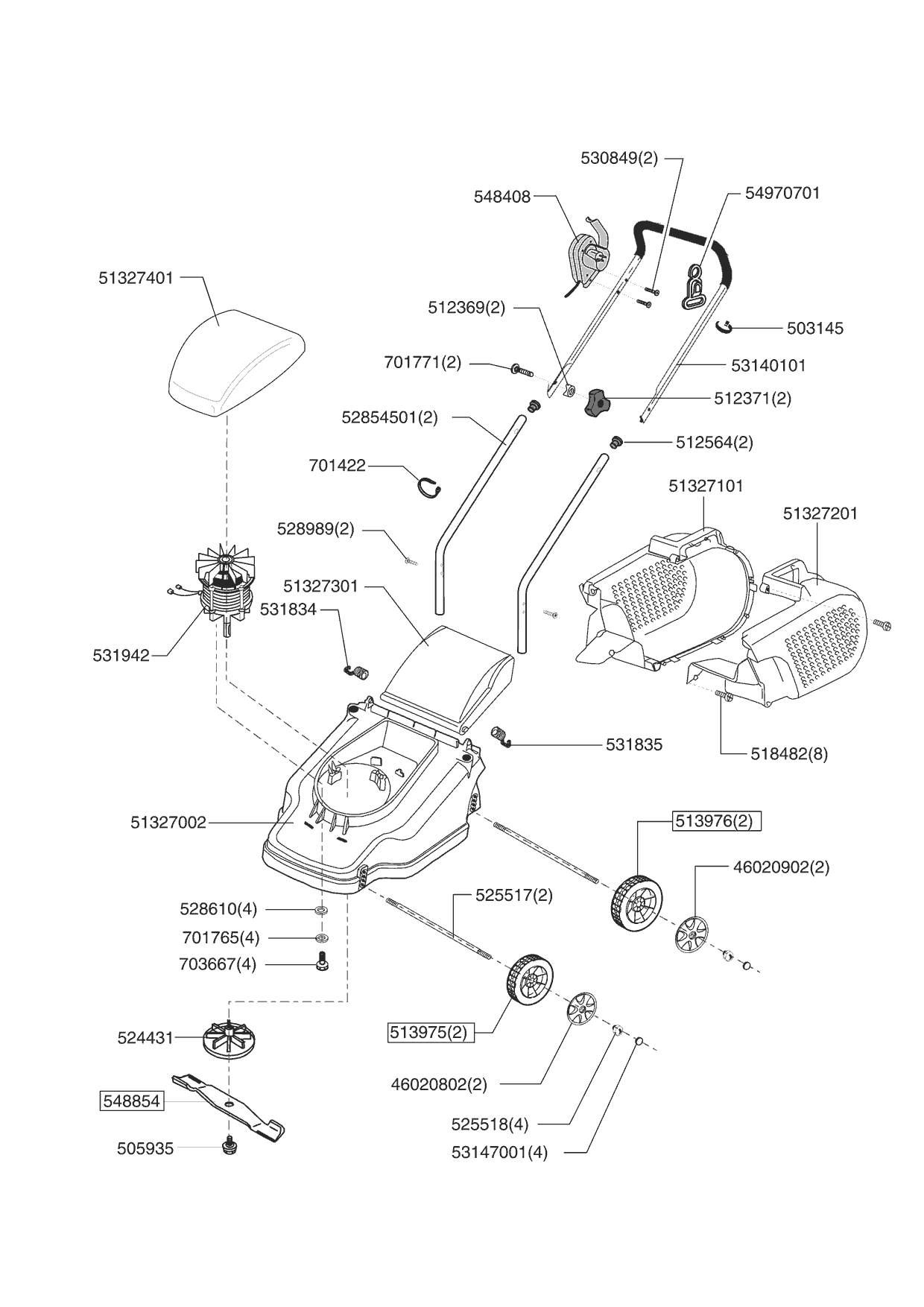Zeichnungen von Sigma Elektrorasenmäher SL 32 E ab 05/2005 mit der Geräte-Artikelnr. 121137: