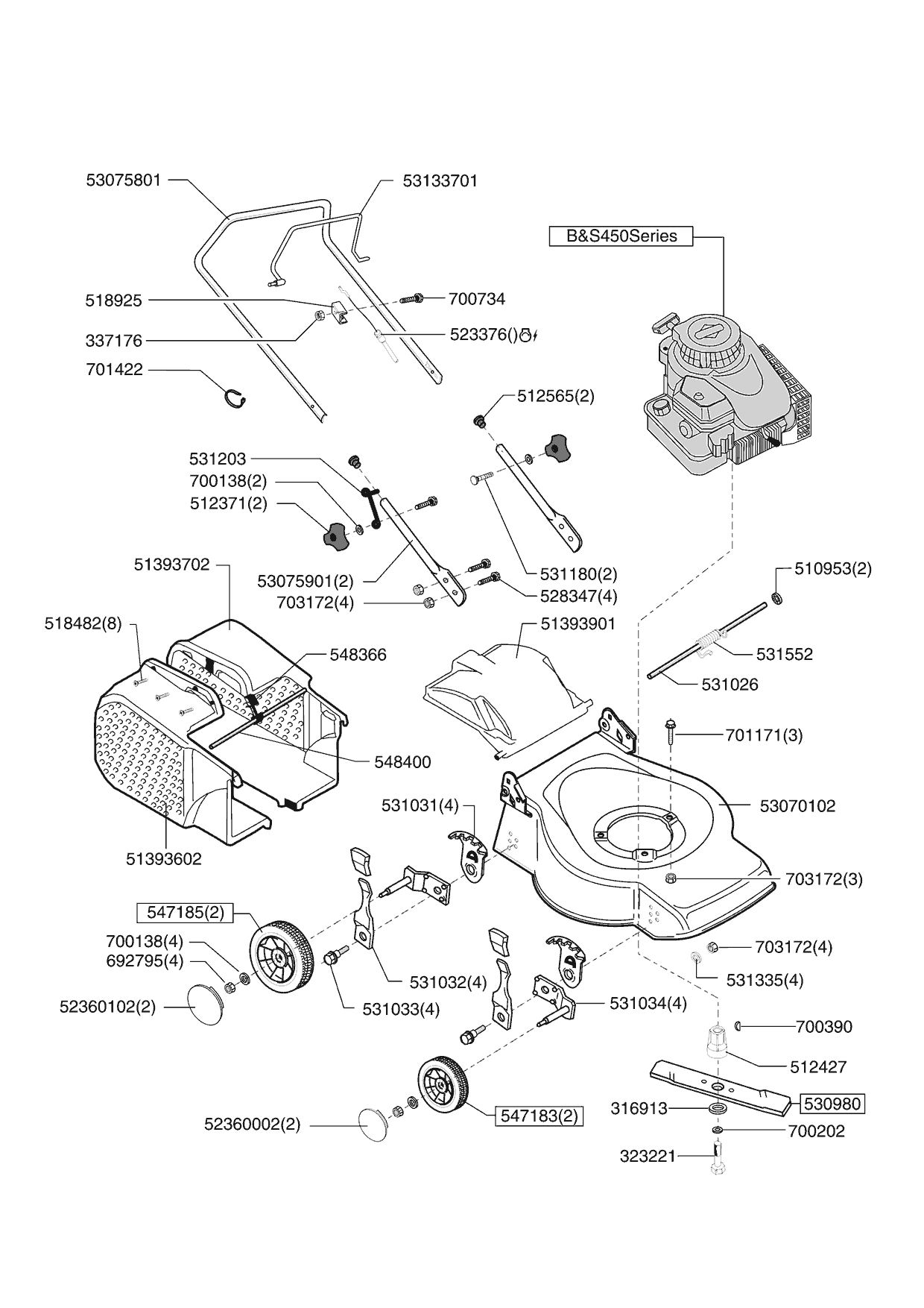 Zeichnungen von Sigma Benzinrasenmäher GL 40 B ab 05/2009 mit der Geräte-Artikelnr. 121212: