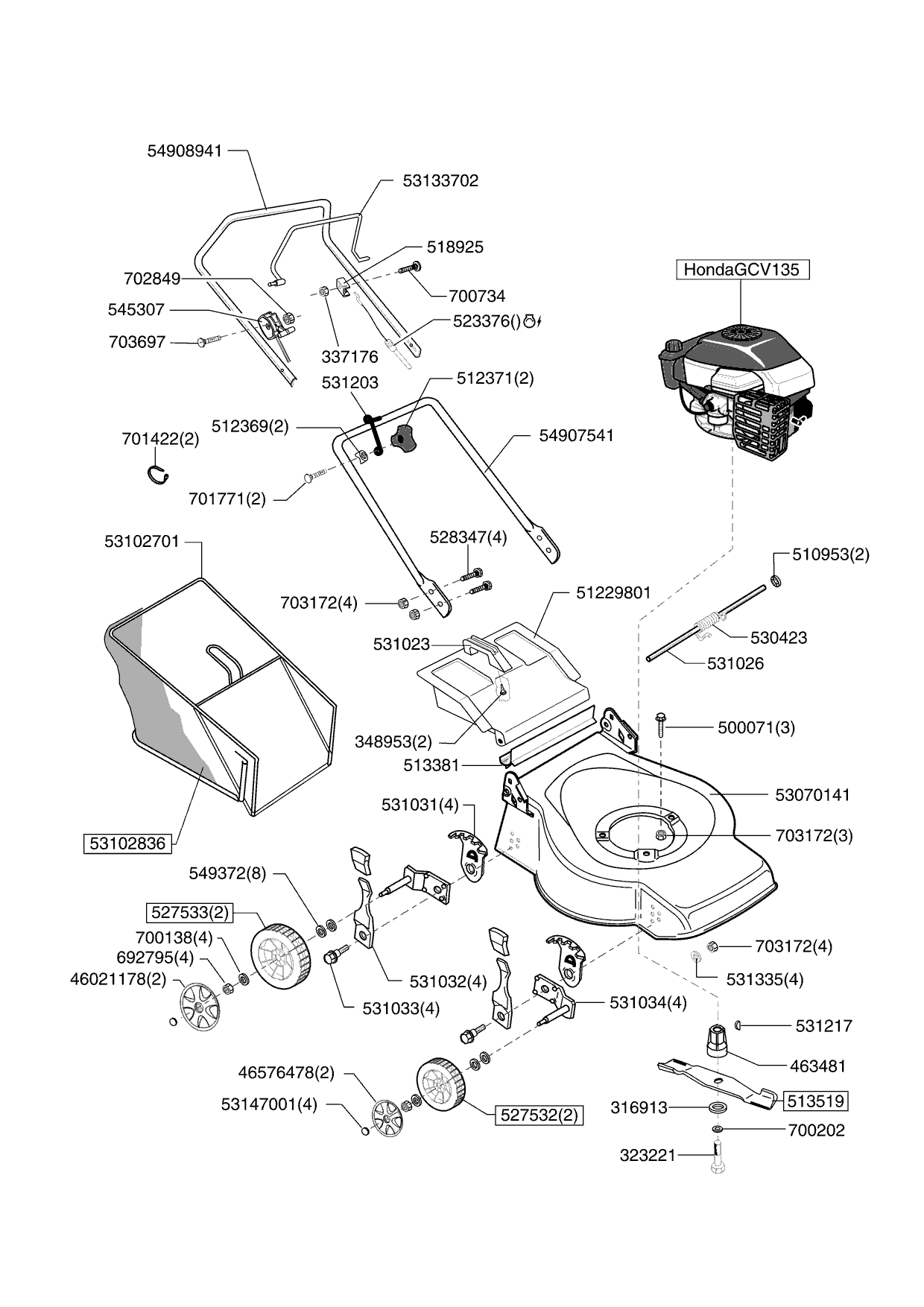 Zeichnungen von Sigma Benzinrasenmäher HL 40 H ab 05/2009 mit der Geräte-Artikelnr. 121454: