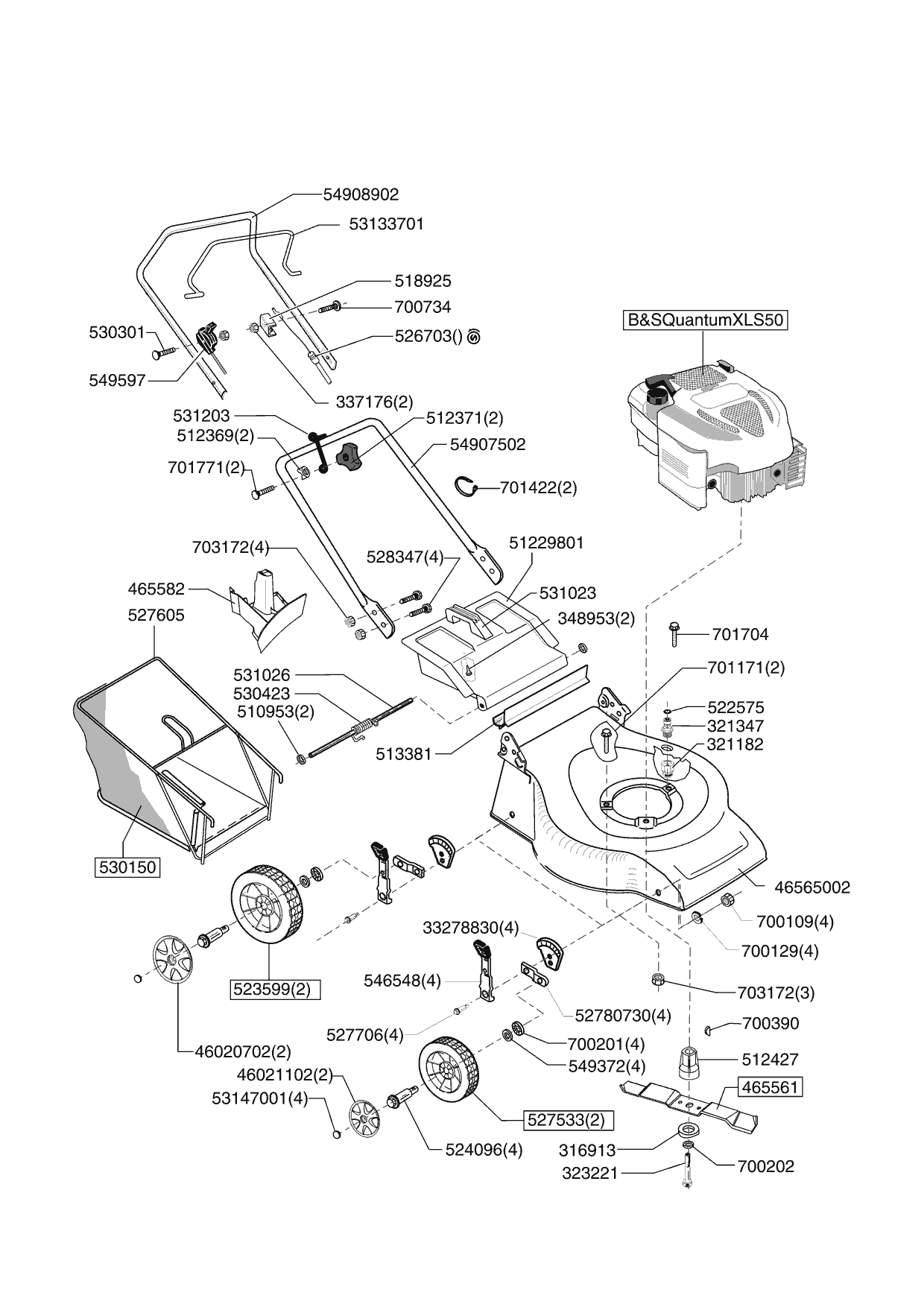 Zeichnungen von Sigma Benzinrasenmäher SL 52-5 B ab 06/2006 mit der Geräte-Artikelnr. 121226: