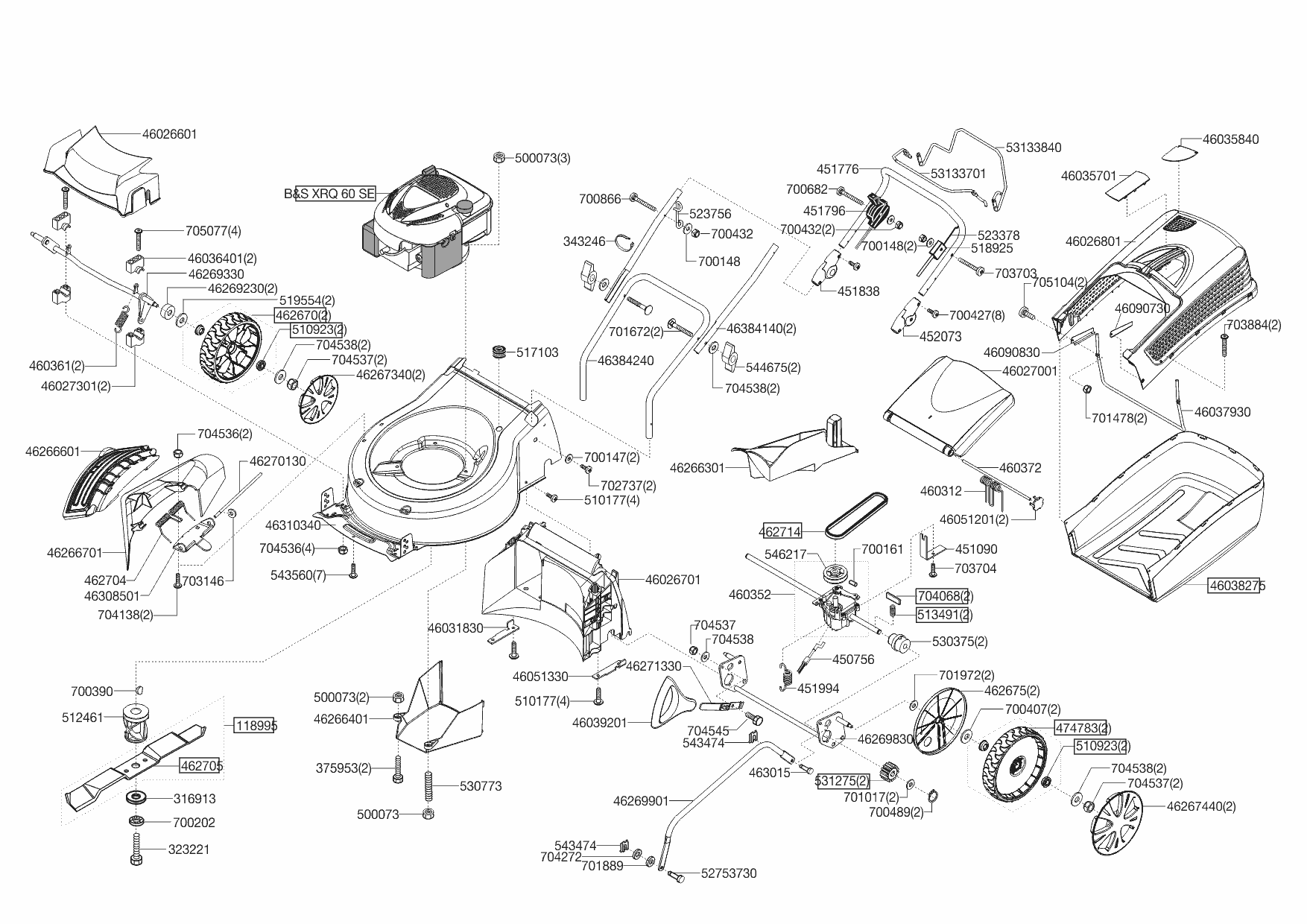Zeichnungen von Ginge Benzinrasenmäher SILVER 520 B AUTO ab 06/2012 mit der Geräte-Artikelnr. 118970: