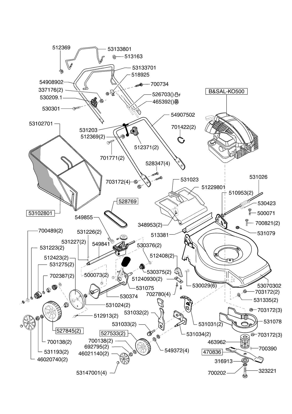 Zeichnungen von Sigma Benzinrasenmäher SL 46 BR Sprint 40 ab 08/2010 mit der Geräte-Artikelnr. 121141: