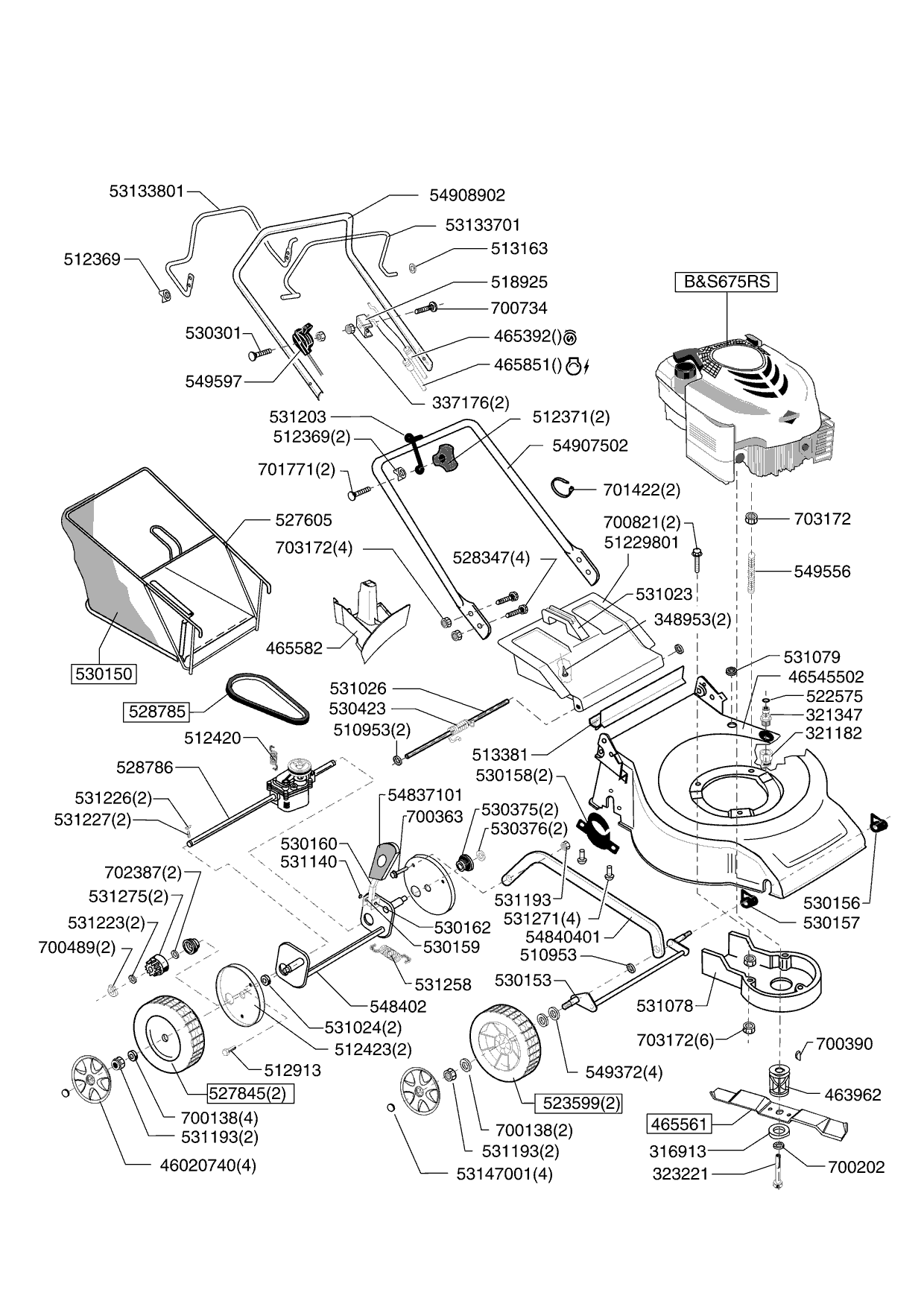Zeichnungen von Sigma Benzinrasenmäher SL 52-6 BR ab 08/2010 mit der Geräte-Artikelnr. 121227: