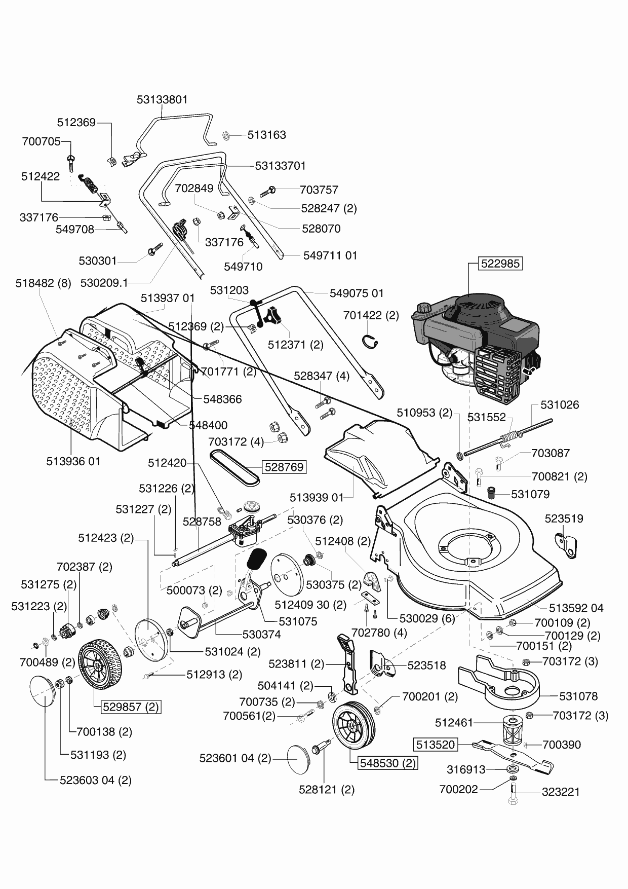Zeichnungen von Ginge Benzinrasenmäher Rasaero 46 B Auto ab 09/2001 mit der Geräte-Artikelnr. 120859: