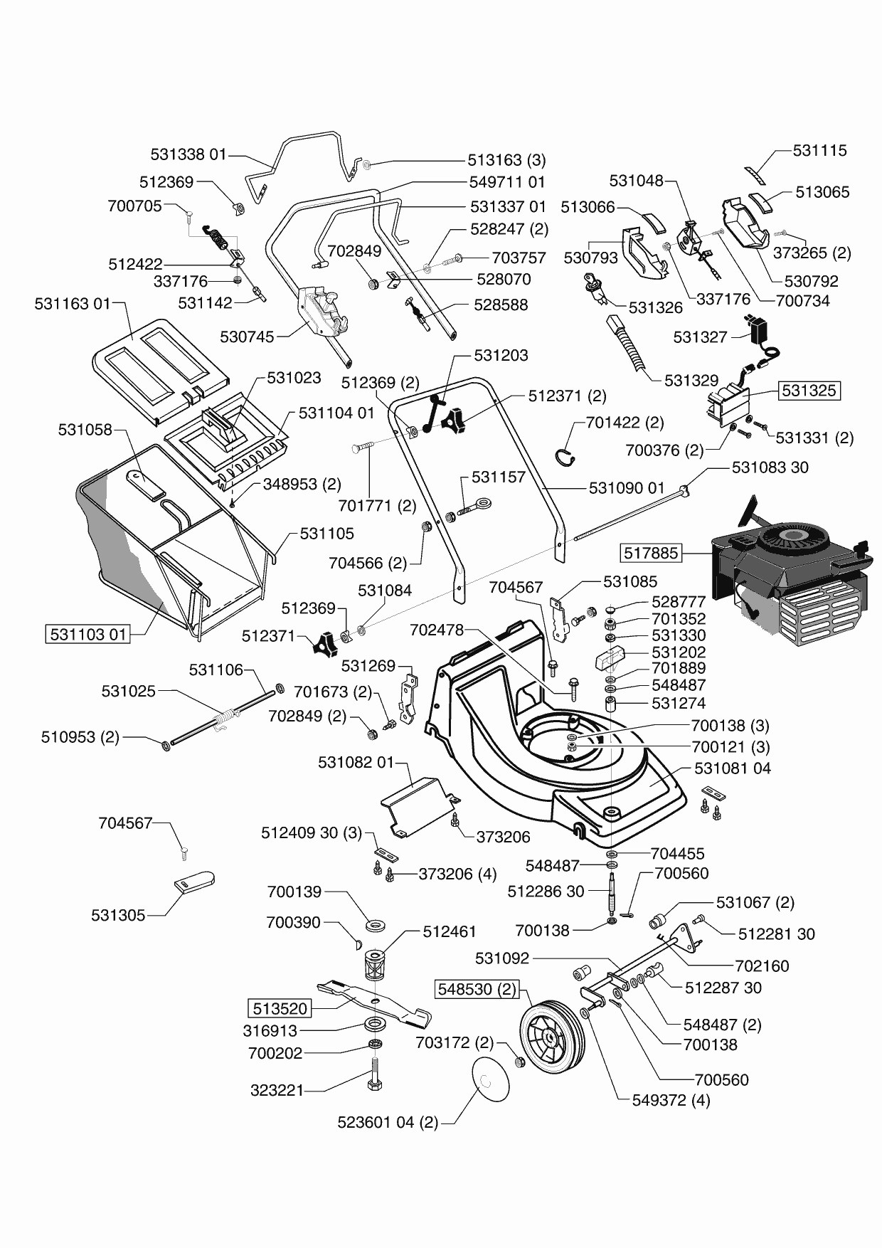 Zeichnungen von Ginge Benzinrasenmäher Bilka 47 Alu ES ab 09/2001 mit der Geräte-Artikelnr. 120891: