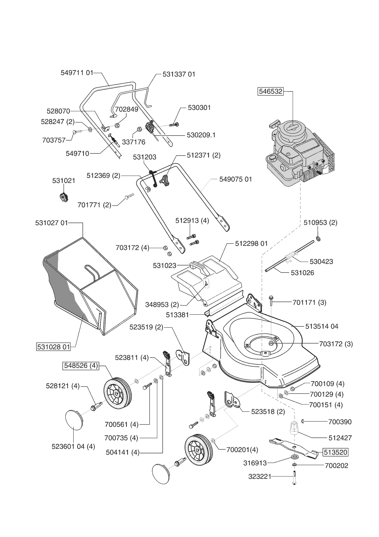 Zeichnungen von Ginge Benzinrasenmäher CL 46 B ab 09/2001 mit der Geräte-Artikelnr. 120312: