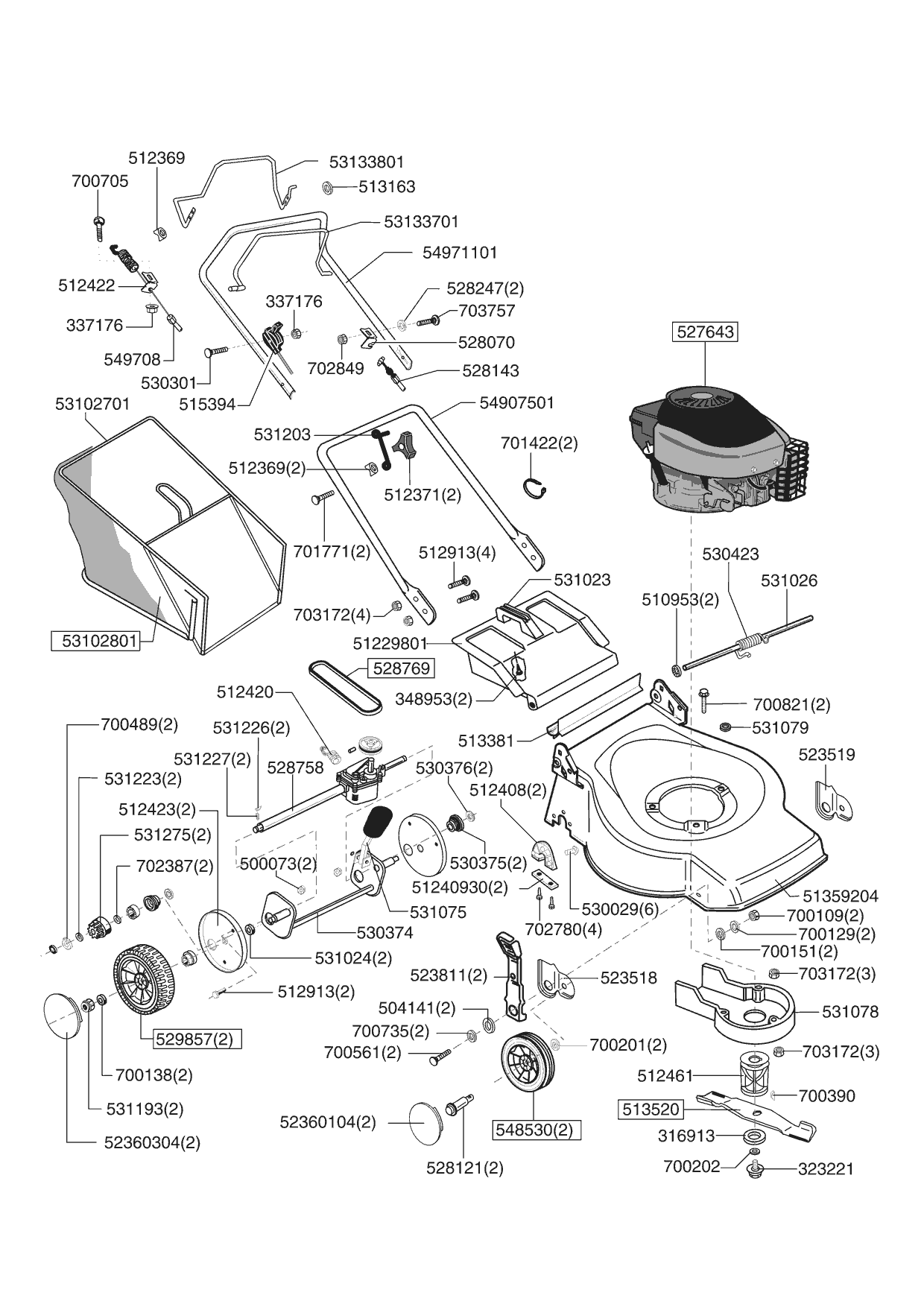 Zeichnungen von Ginge Benzinrasenmäher CL 46 Bauto ab 09/2001 mit der Geräte-Artikelnr. 120480: