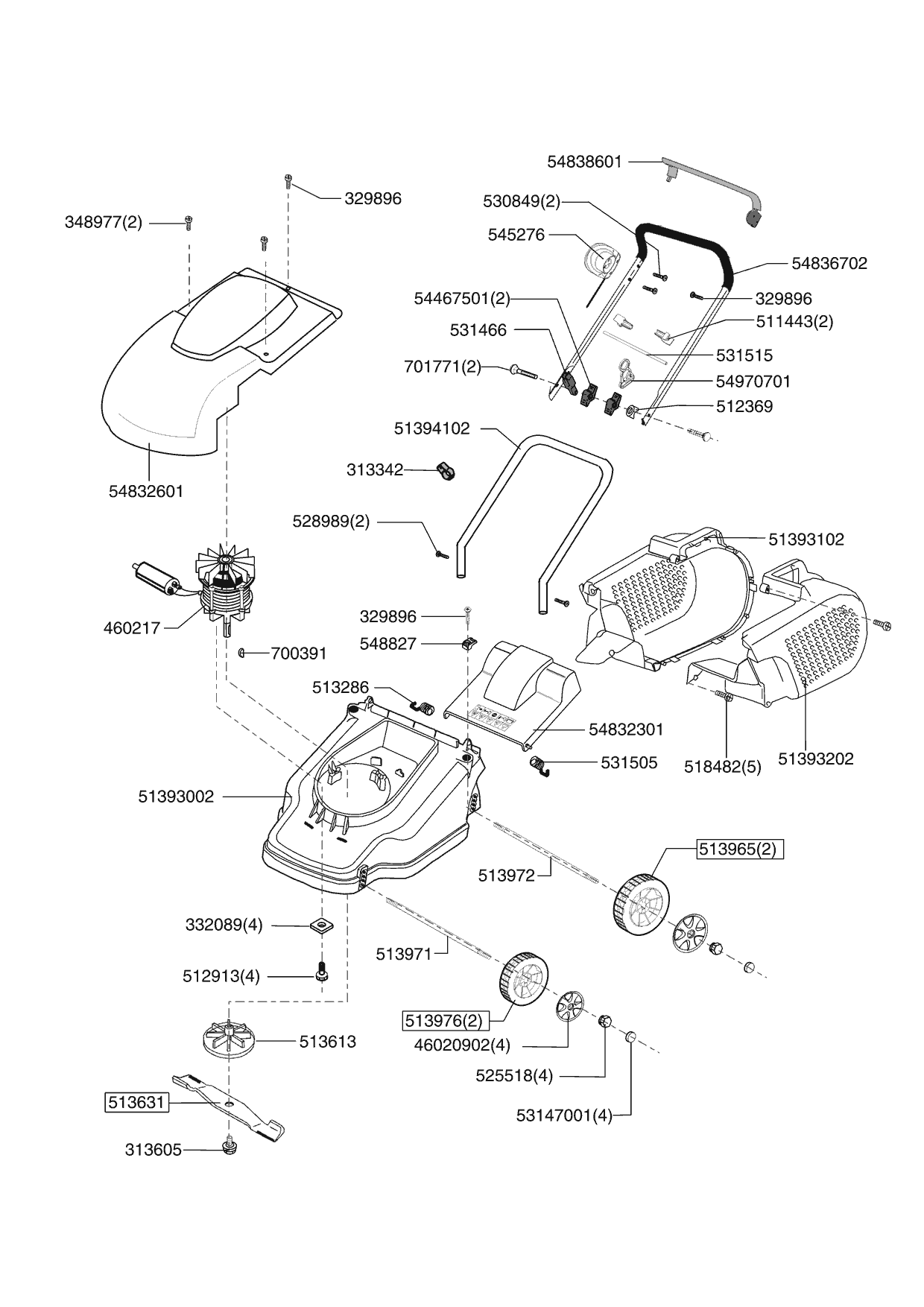 Zeichnungen von Sigma Elektrorasenmäher SL 380 E ab 09/2008 mit der Geräte-Artikelnr. 121190: