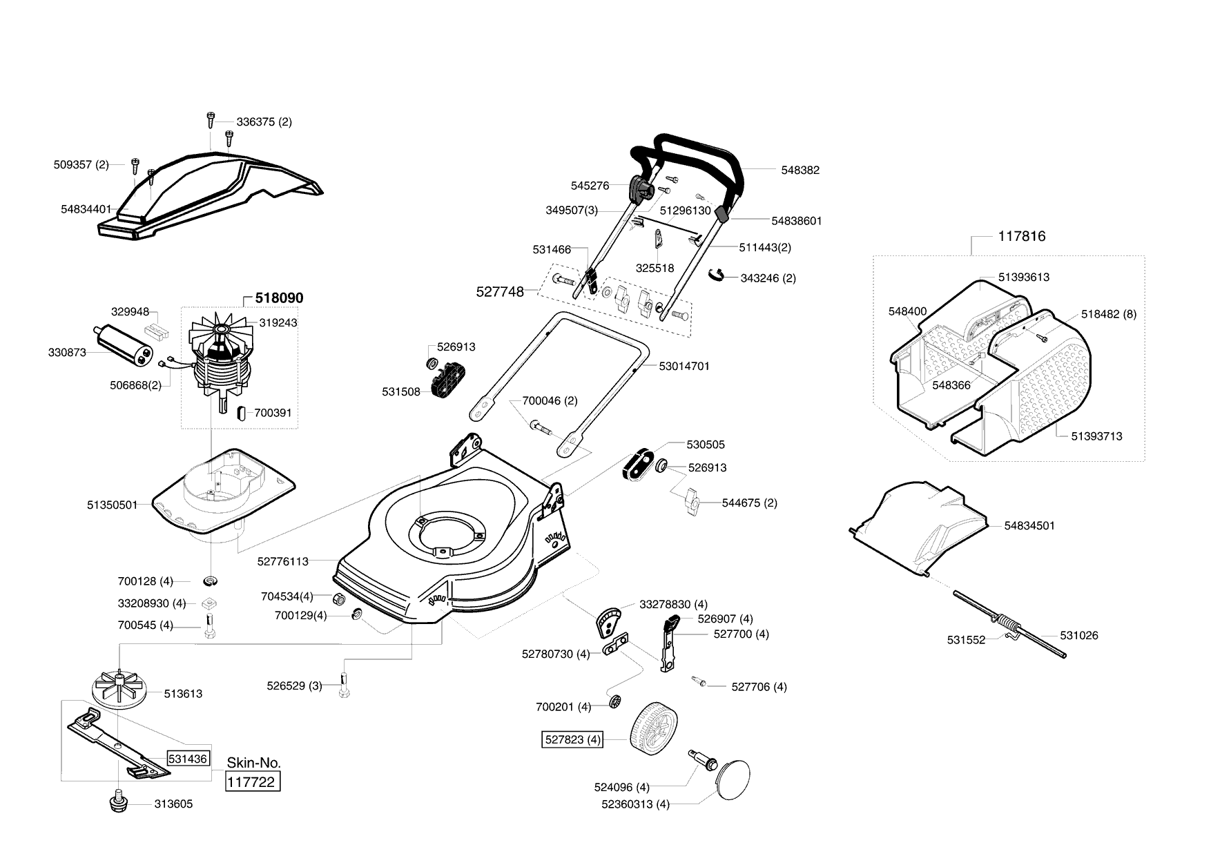 Zeichnungen von E-Flor Elektrorasenmäher 1647 P ab 10/2003 mit der Geräte-Artikelnr. 118256:
