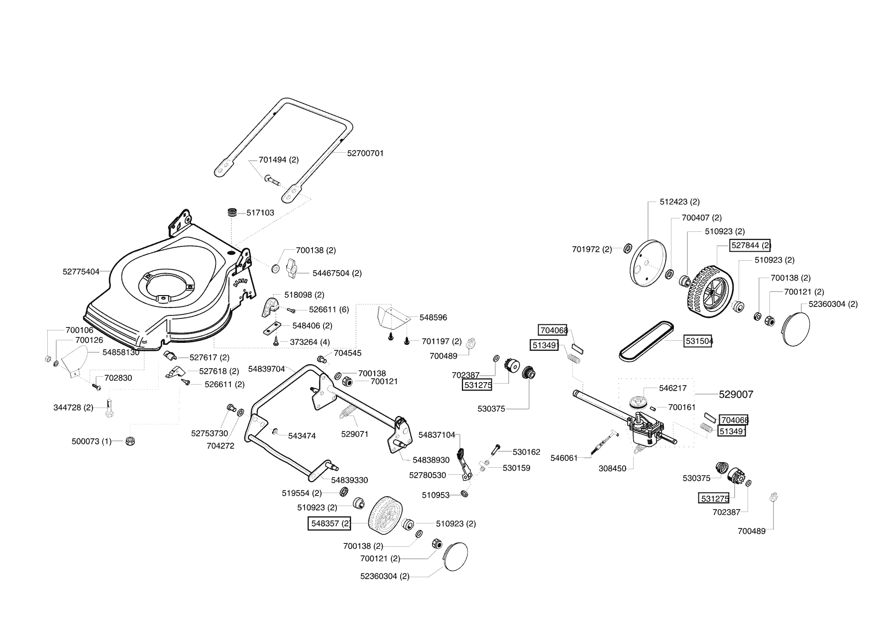 Zeichnungen von Ginge Benzinrasenmäher Comfort 47 BR Auto ab 10/2003 mit der Geräte-Artikelnr. 118370: