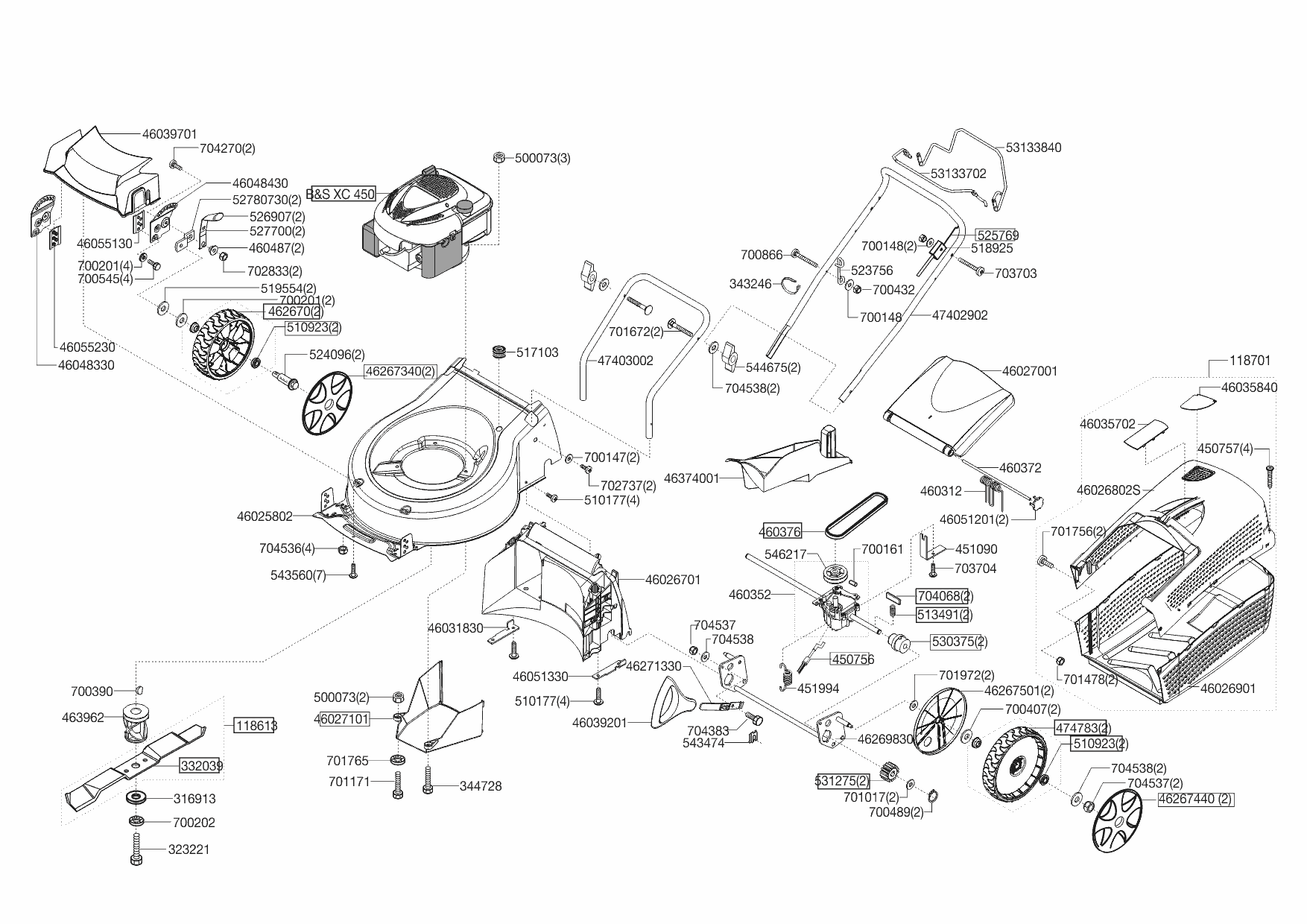 Zeichnungen von Ginge Benzinrasenmäher Favorit 461 BR ab 10/2003 mit der Geräte-Artikelnr. 118367:
