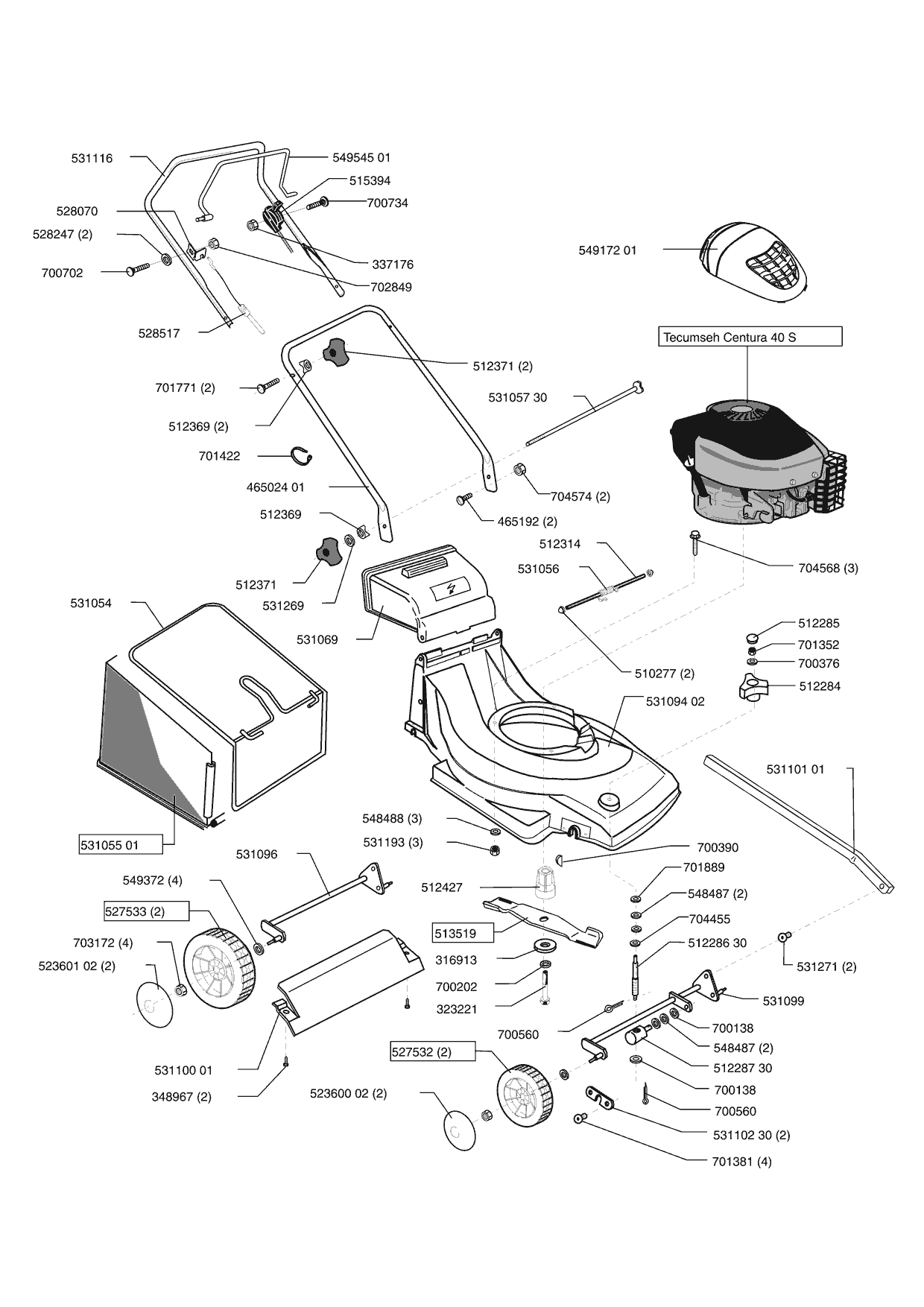 Zeichnungen von Sigma Benzinrasenmäher SL 42 B ab 10/2003 mit der Geräte-Artikelnr. 121142: