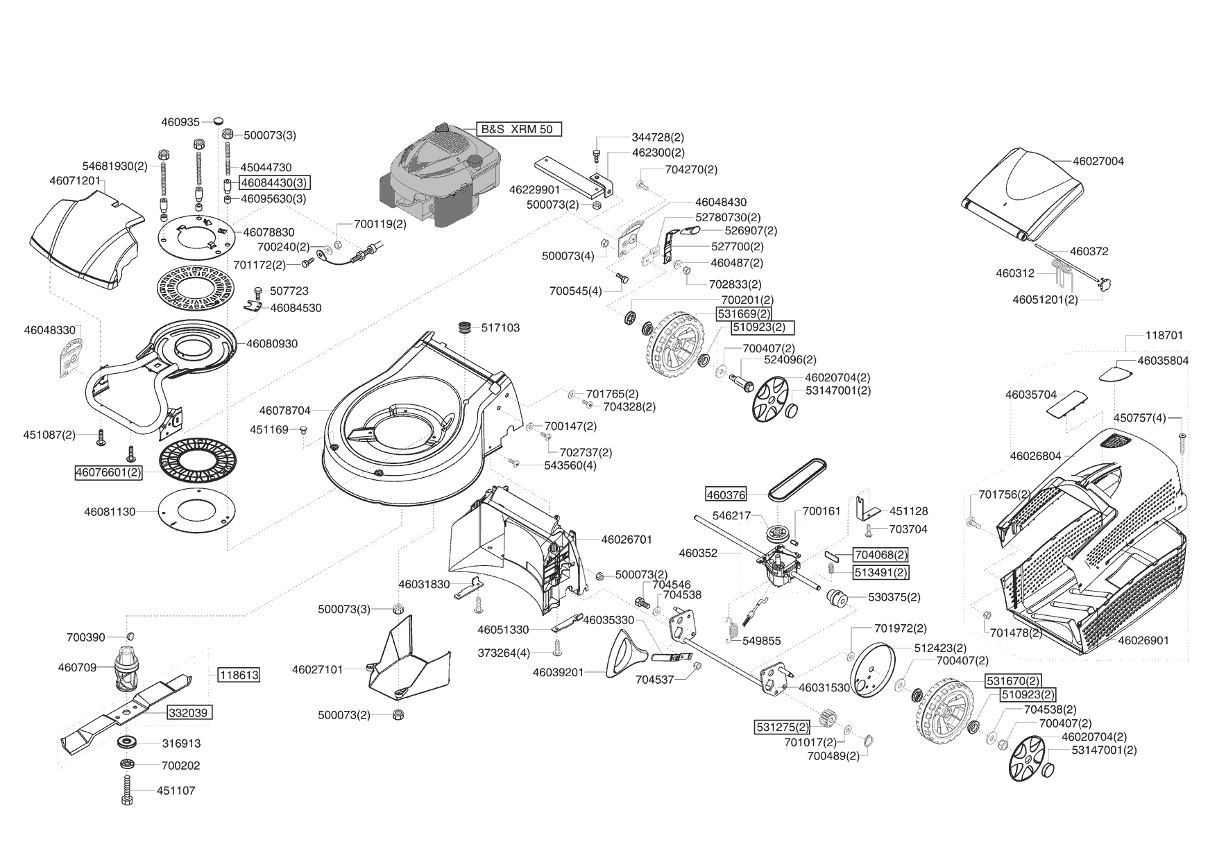 Zeichnungen von Ginge Benzinrasenmäher Vario 470 B Auto ab 11/2005 mit der Geräte-Artikelnr. 118660: