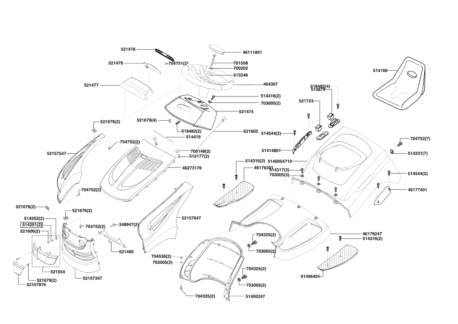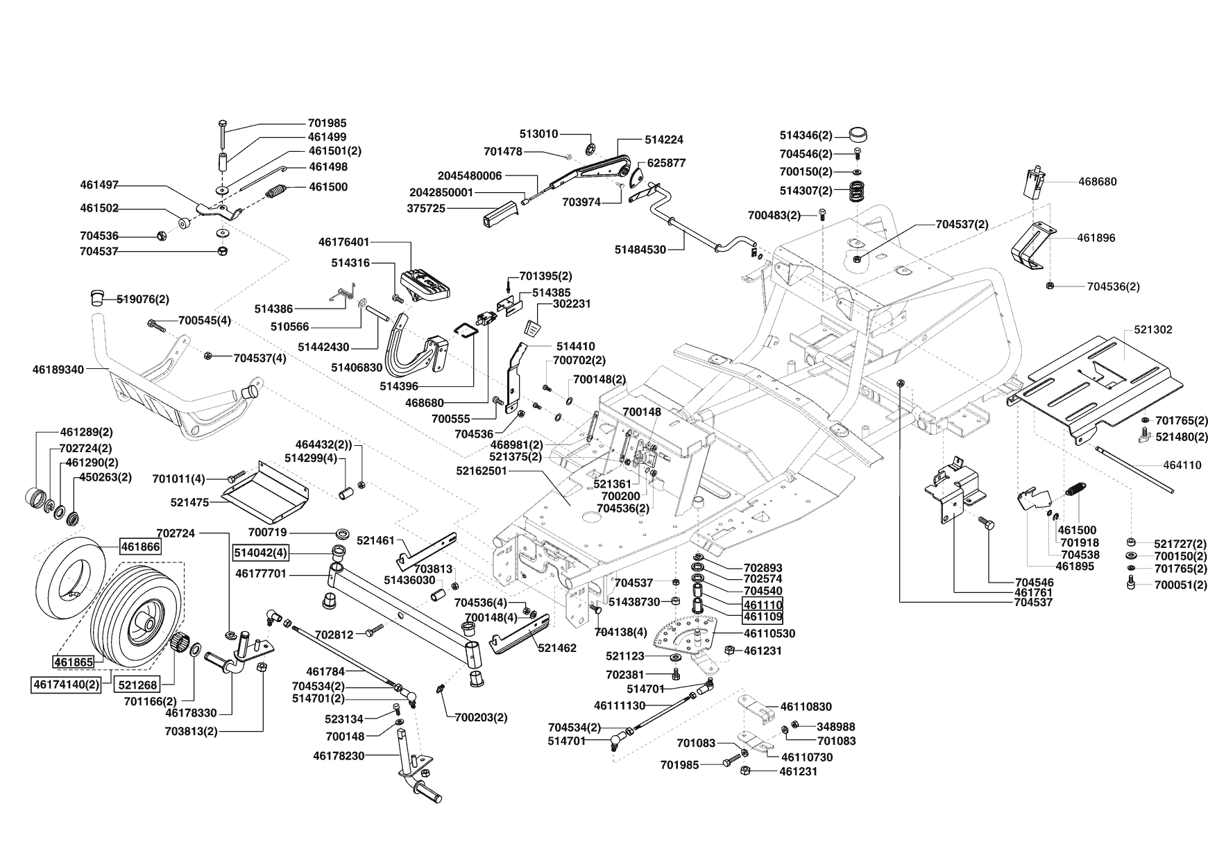 Zeichnungen von Brill Rasentraktor Crossover 102/20 HE ab 11/2009 mit der Geräte-Artikelnr. 118903: