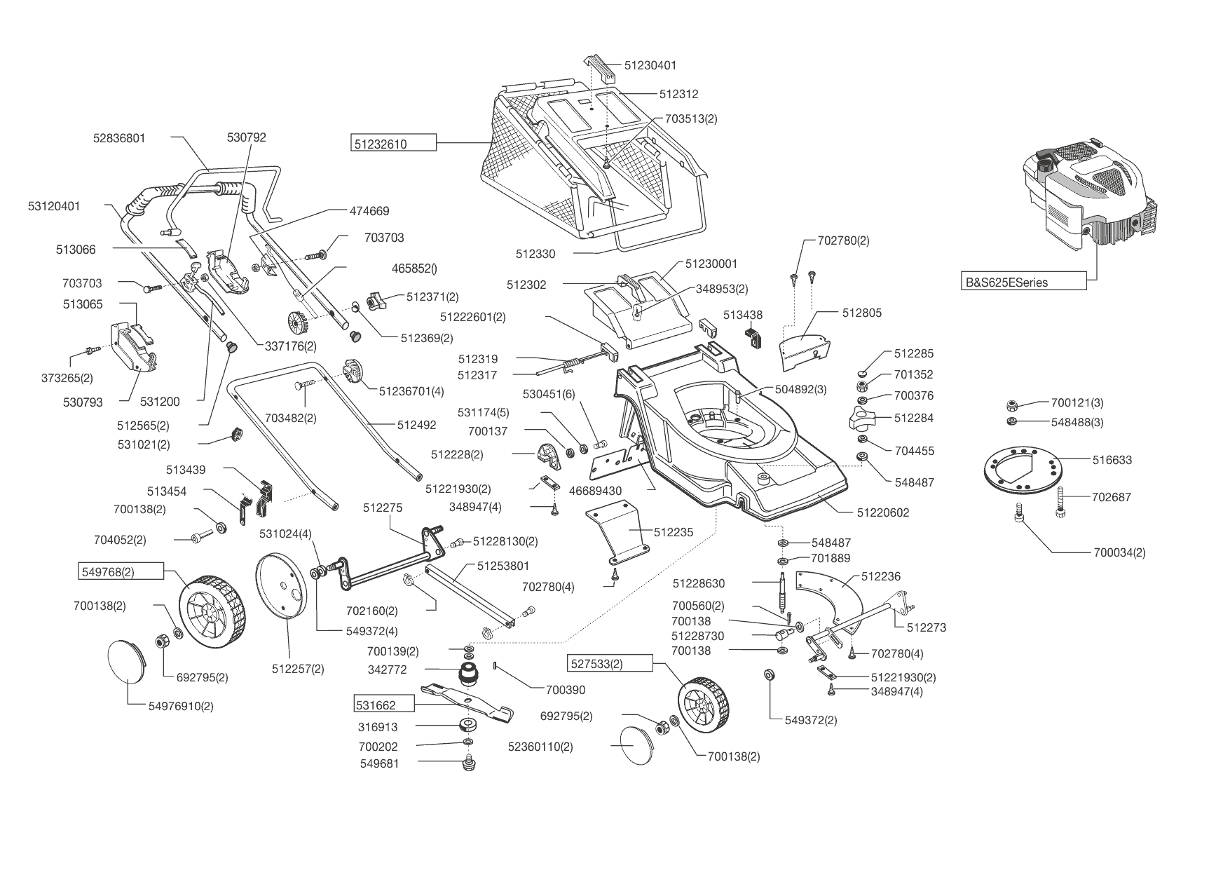 Zeichnungen von Sigma Benzinrasenmäher HVC 485 B ab 12/2014 mit der Geräte-Artikelnr. 120821: