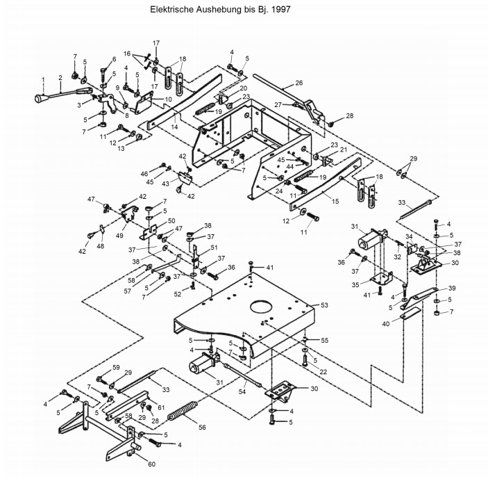 Zeichnung von ECHO-Motorgeräte Rasentraktoren A-Serie A-Serie Bj. 1996 bis August 2002 elektrische Aushebung bis Bj. 1997:
