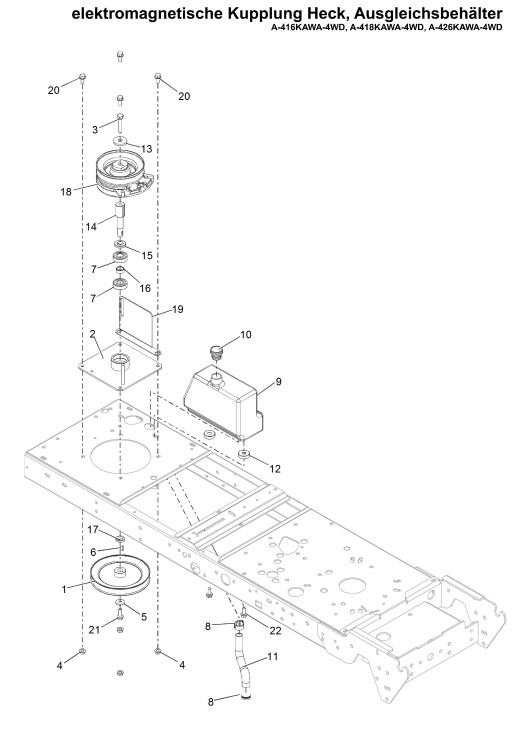 Zeichnung von ECHO-Motorgeräte Rasentraktoren A-Serie A-416KAWA-4WD - 2016-06 A-416KAWA-4WD ab Juni 2016 elektromagnetisch Kupplung Heck, Ausgleichsbehälter: