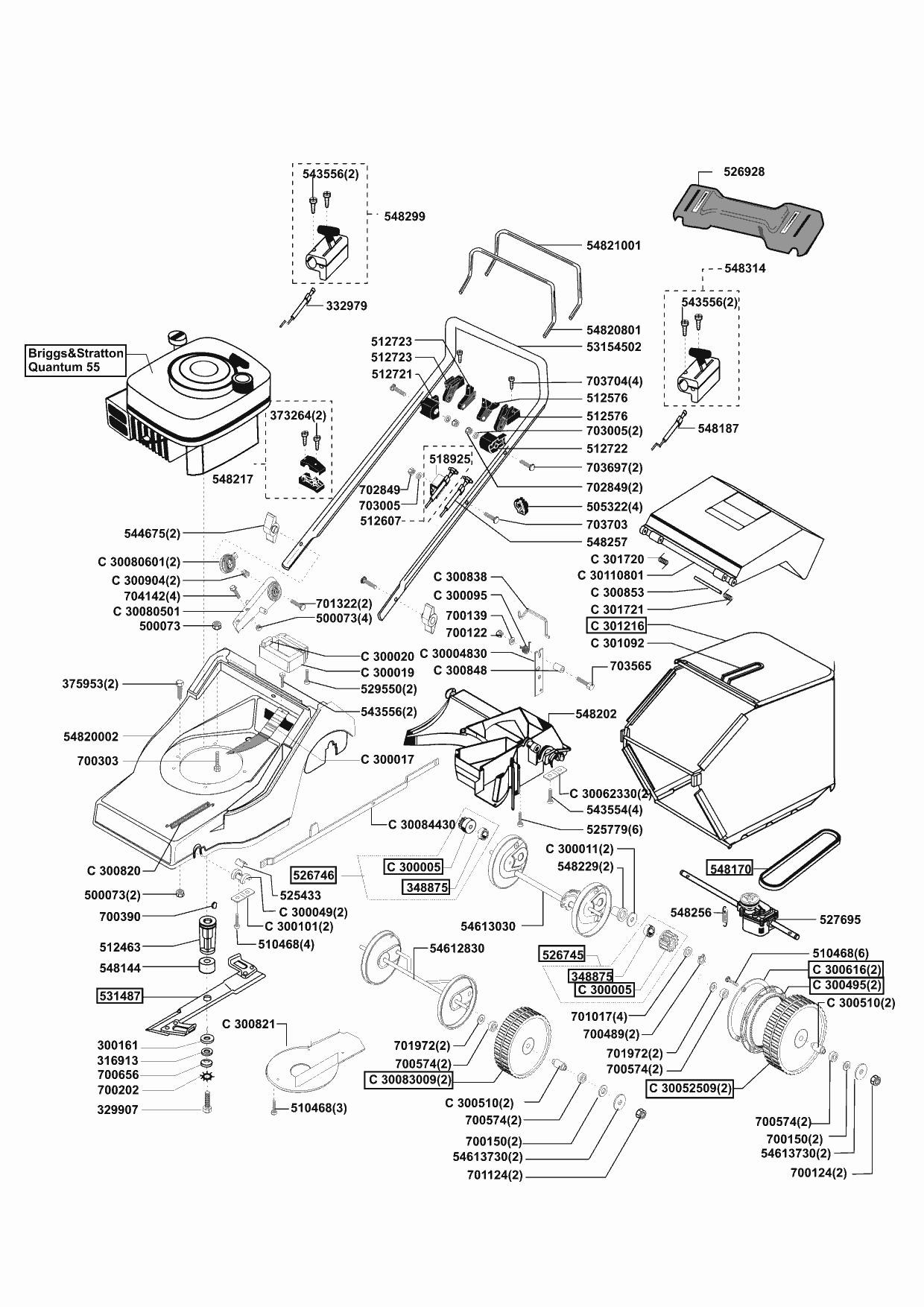 Zeichnungen von Concord Benzinrasenmäher 5300 BR vor 01/1999 mit der Geräte-Artikelnr. 110542: